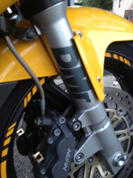 Front forks revalved for street with .85 springs and a new F4 converted shock for the rear. Wish I did it sooner!