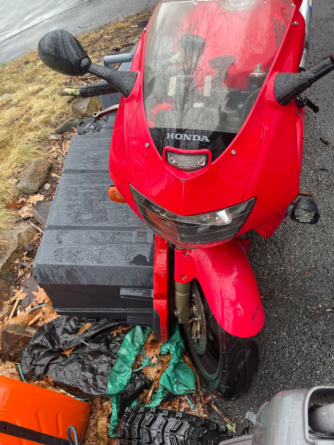 As is. Has not had a battery in it for two years; ran fine the last time I put it away. Has a brand new performance clutch pack in it. Top and bottom ends have been redone. Comes with multiple keys and a full set of new plastics I haven’t installed. Needs a few directional covers, but all lights work. Comes with original tool set from Honda and some extras added. Has a quad-lock, fork mounted, phone retention system with wireless charging pad.
