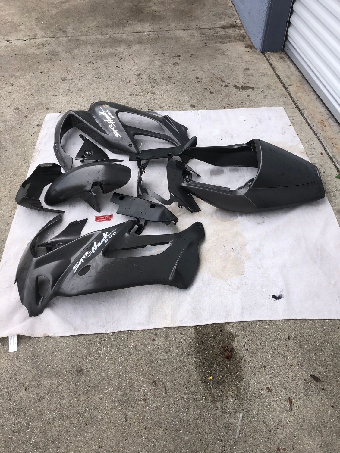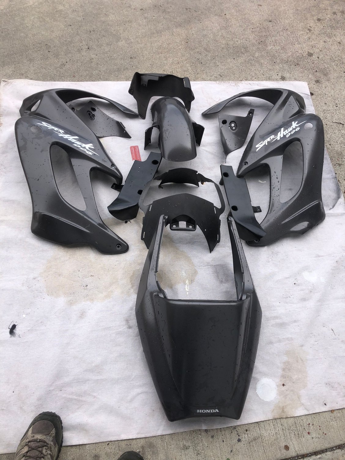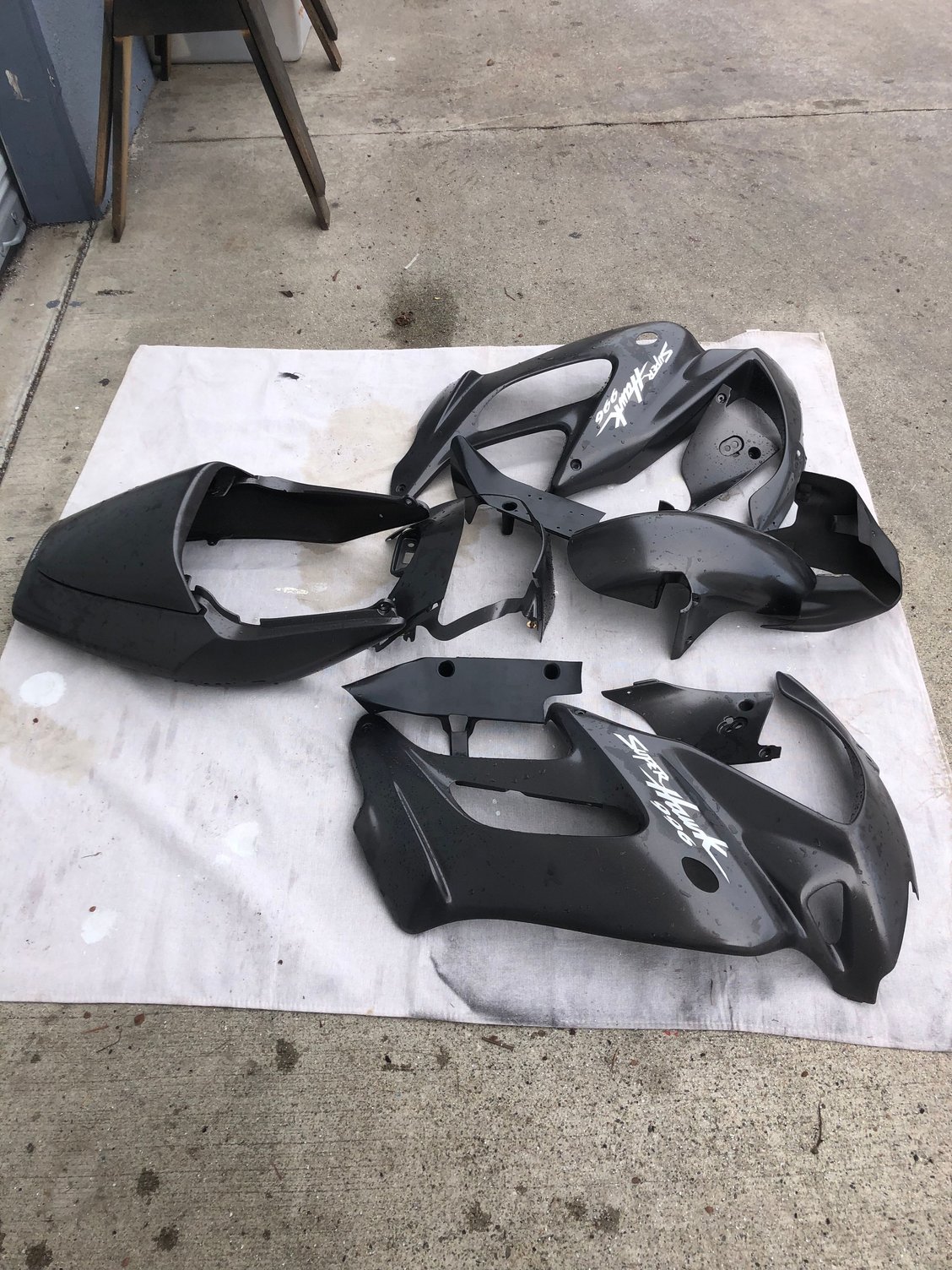 I am selling my leftover OEM plastics. Currently, matte silver, I’ve been repainted three times/colors. One minor crack as shown in photos.