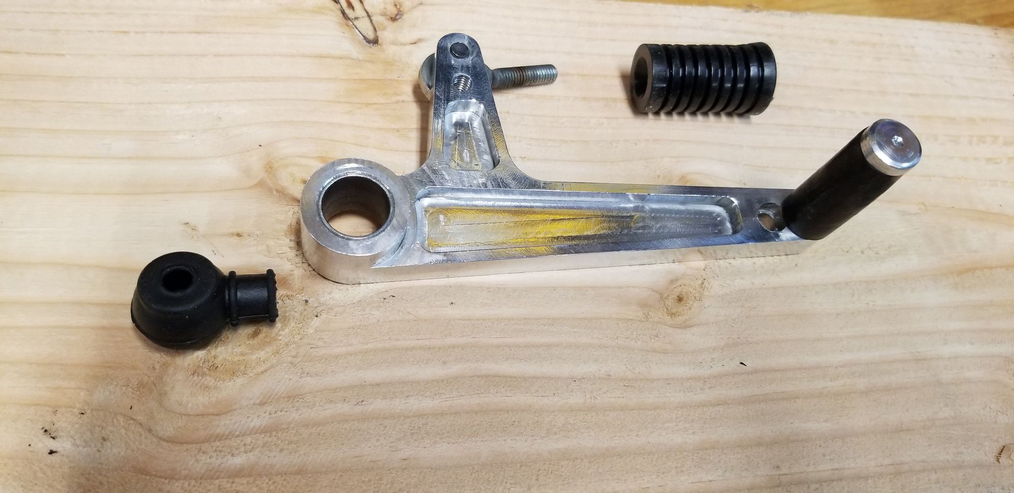 For sale JD shift lever. This is the first version. Comes with brand new toe and heim joint protector. This was installed for a few years. Never down and just shows machining marks. This is off my 2000, I believe the shift rod end may be different on later years (your homework or a knowledgeable member input) $60 shipped lower 48. Thanks. Also I will find the missing bolt for the back of the toe piece I see is missing...