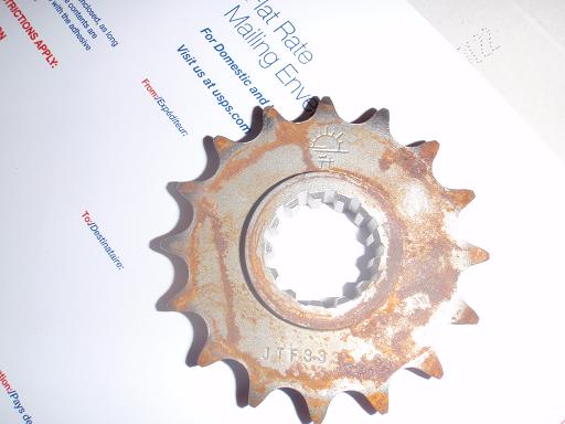 Got surface rust on it but shows very little if any wear. 16 tooth 530 jt sprocket. $12 bucks shipped to your door with priority mail. The rust really is superficial and the sprocket looks good otherwise.