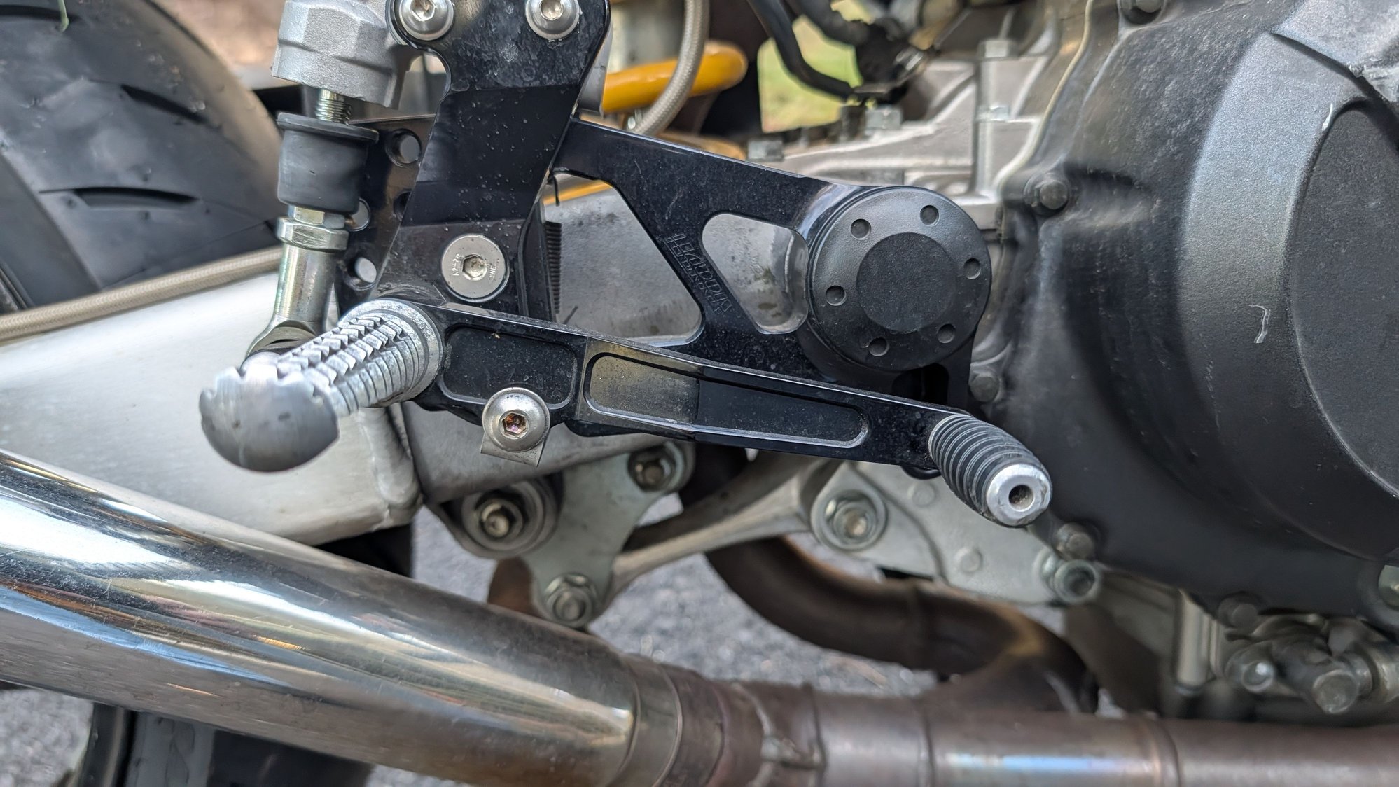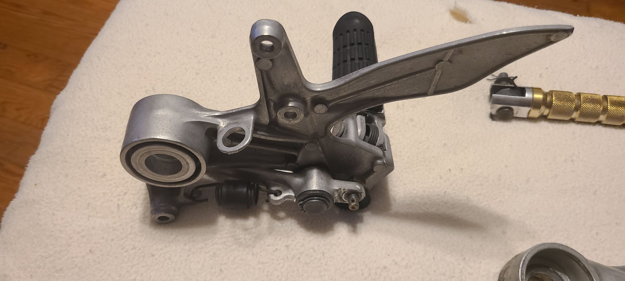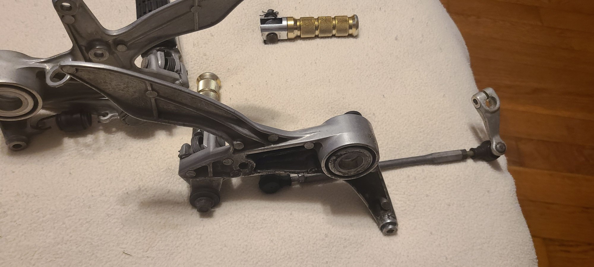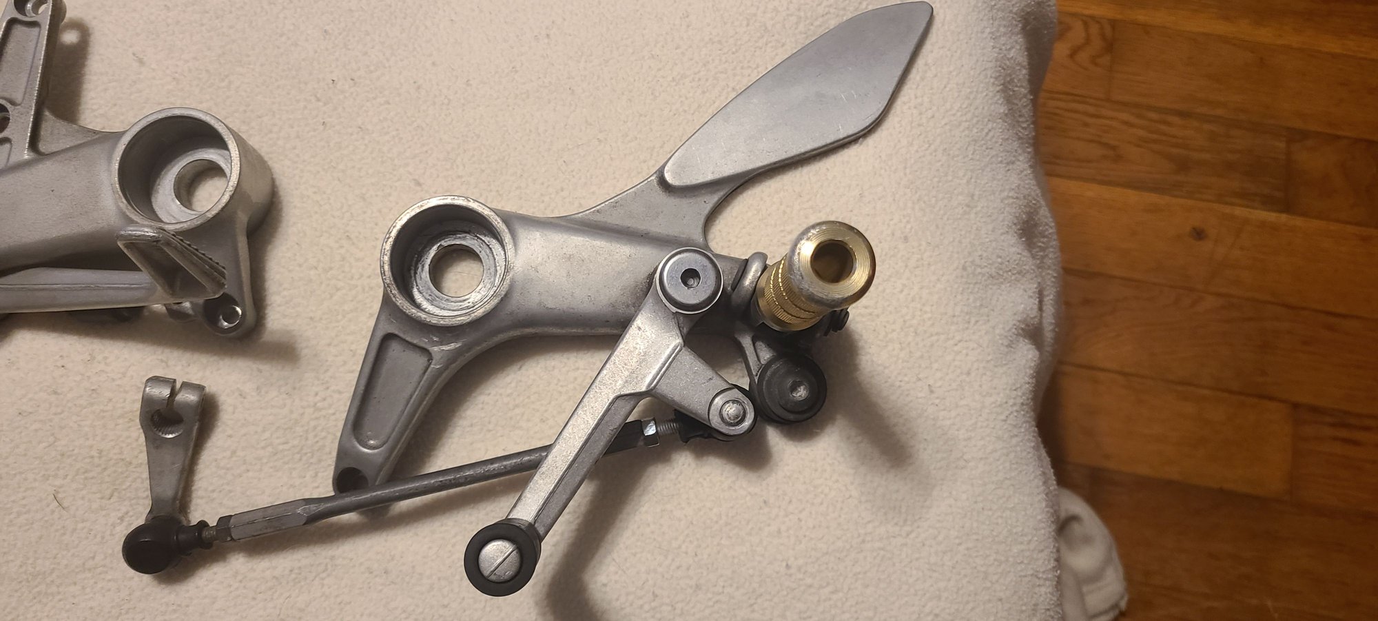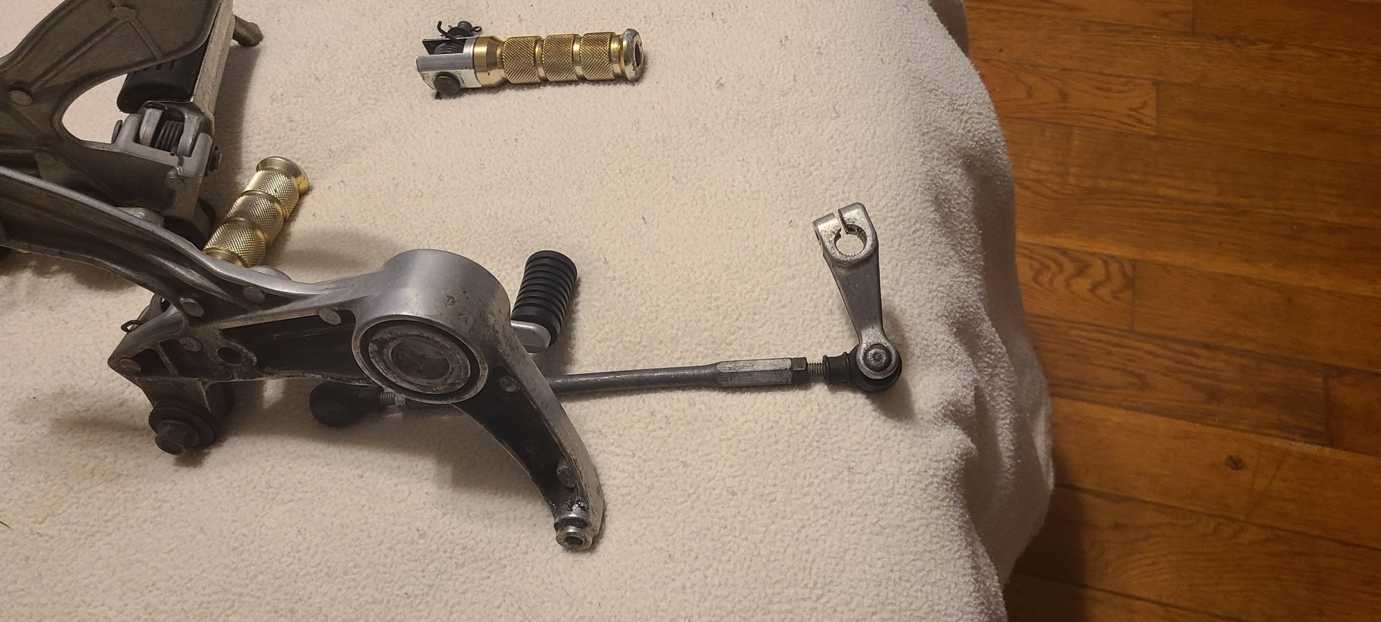 The PO of my installed Harris Rearsets which are murdering my knees. Looking to swap for the stock items.