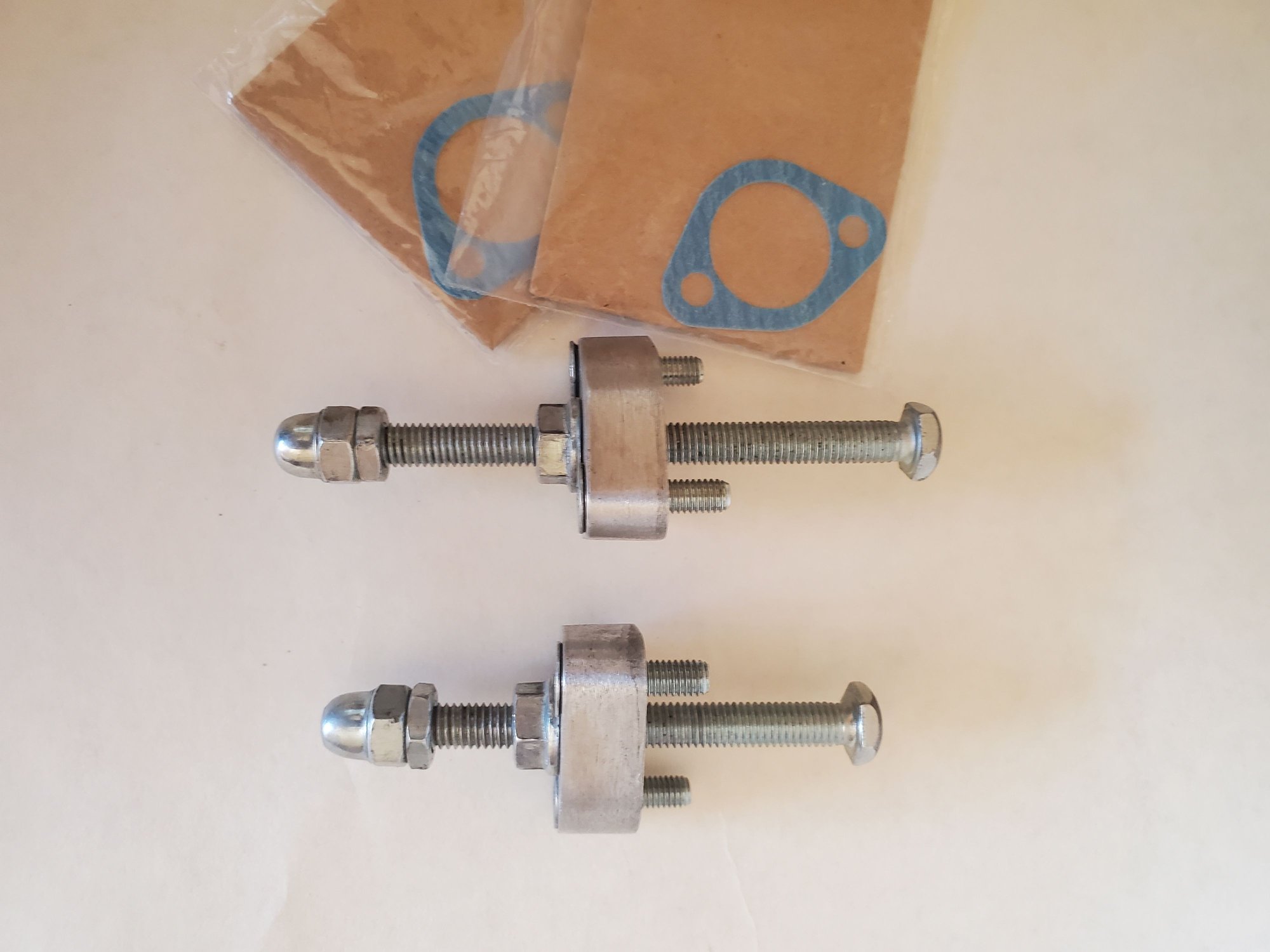 Manual cam chain tensioners by Kreiger. These have an O-ring and matching chamfer under the locking nut to prevent oil from weeping past the threaded shaft. works great on the front, the rear required a very small wrap of teflon tape to be perfect. No secrets. I've included a pair of Honda OEM gaskets so you don't have to.