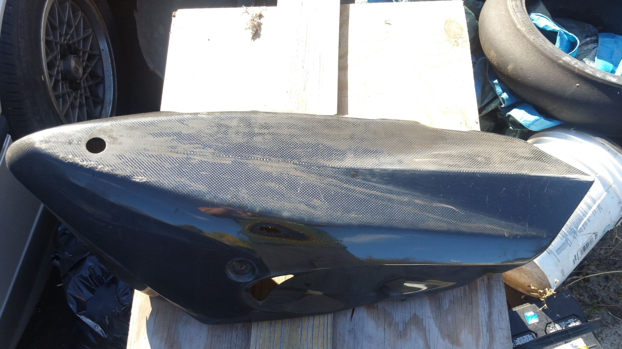 It also has some burn damage from the exhaust. Can't really be seen when it's mounted on the bike.
