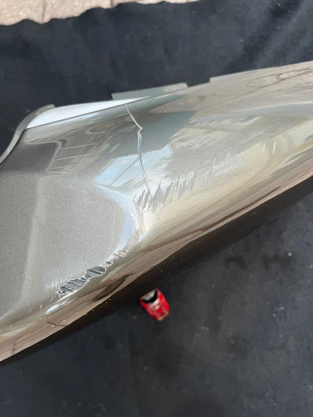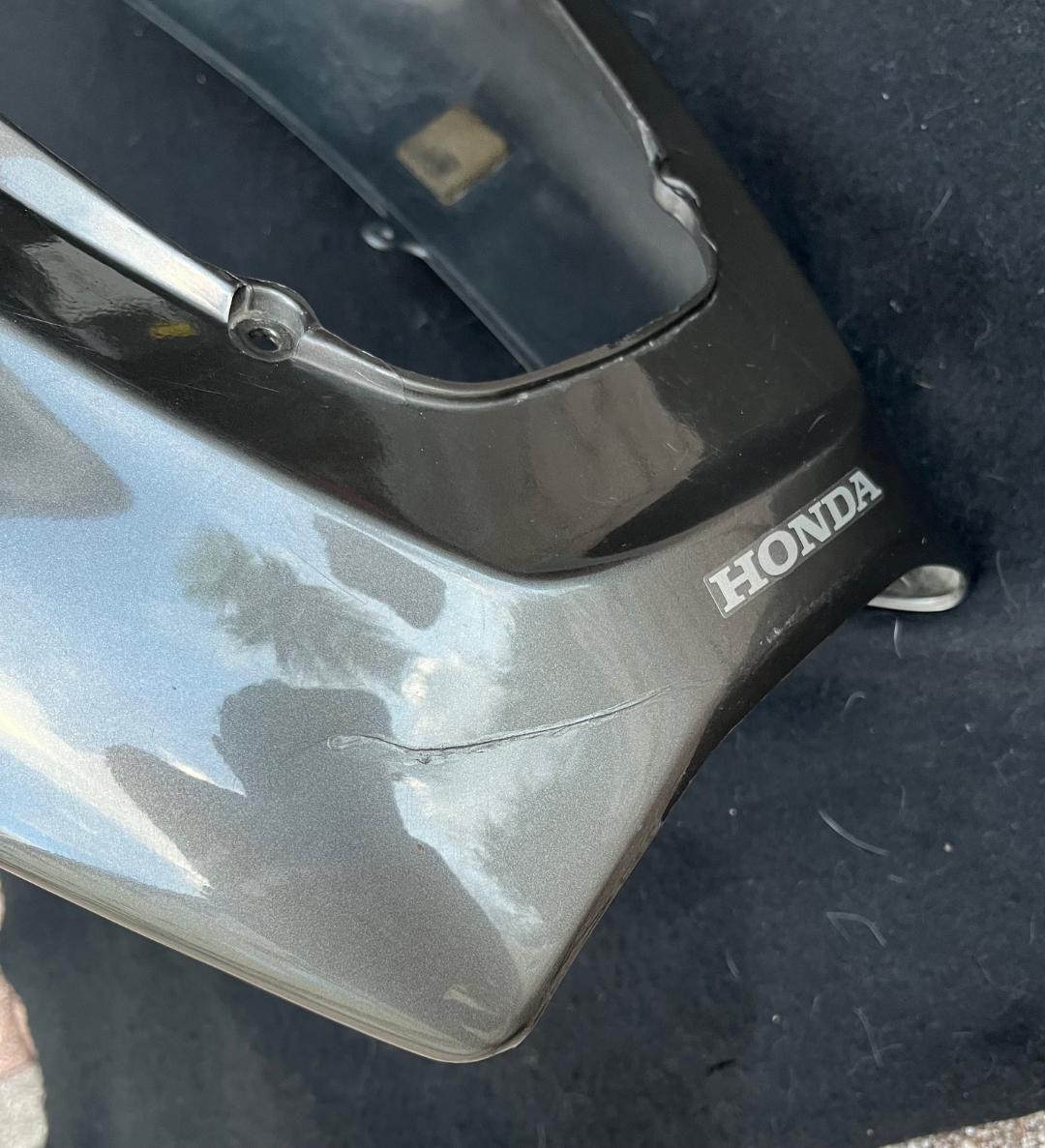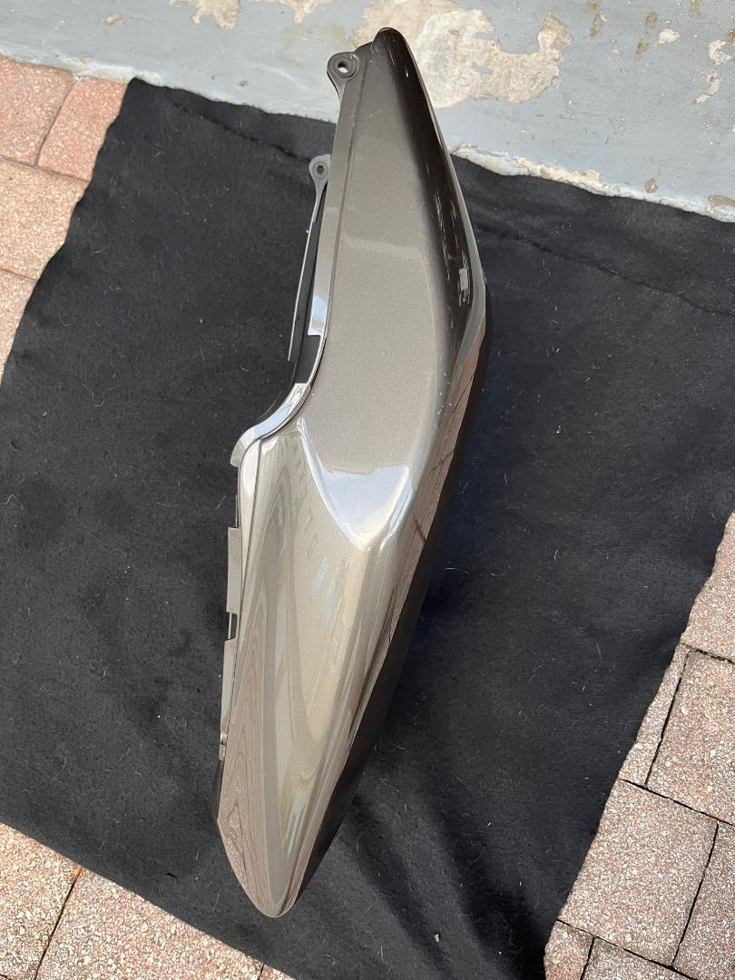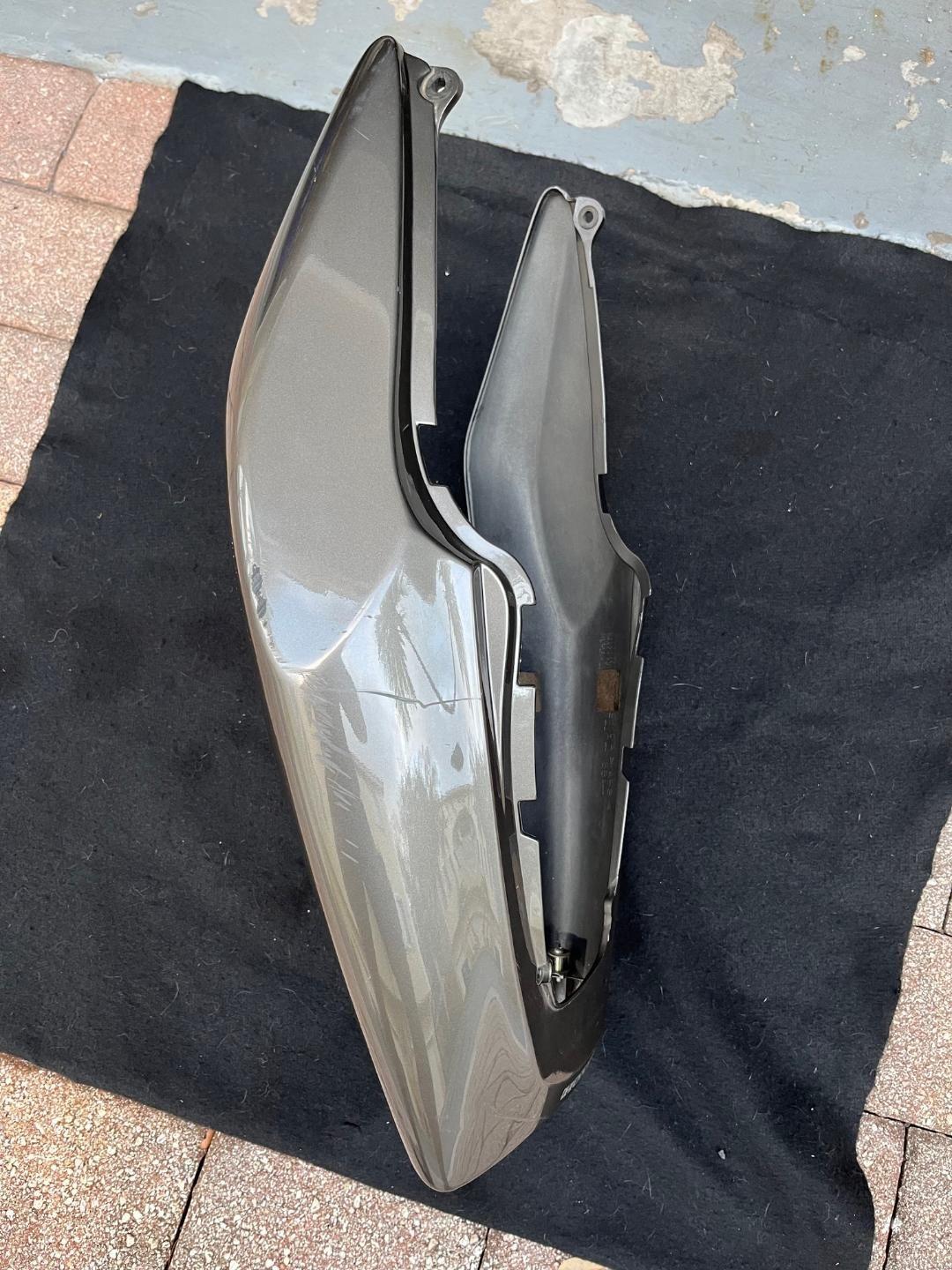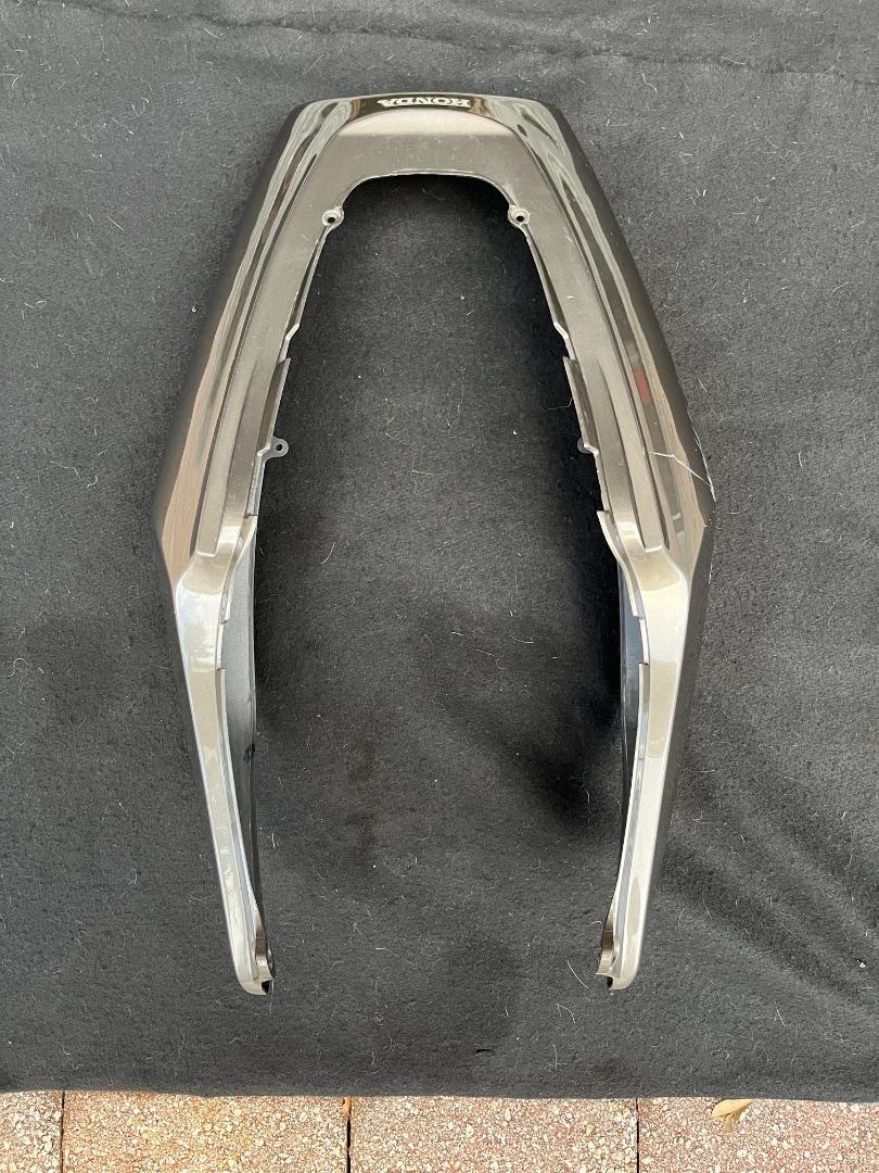 OEM rear cowl/tail fairing. Excellent condition with NO cracks or broken tabs. In the original 2005 Titanium Metallic. Does have some scratches and a little rash on the left side and a scratch near the left rear which are pictured. Original bodywork is getting difficult to find in good shape. Clips and hardware for the taillight are included. SOLD