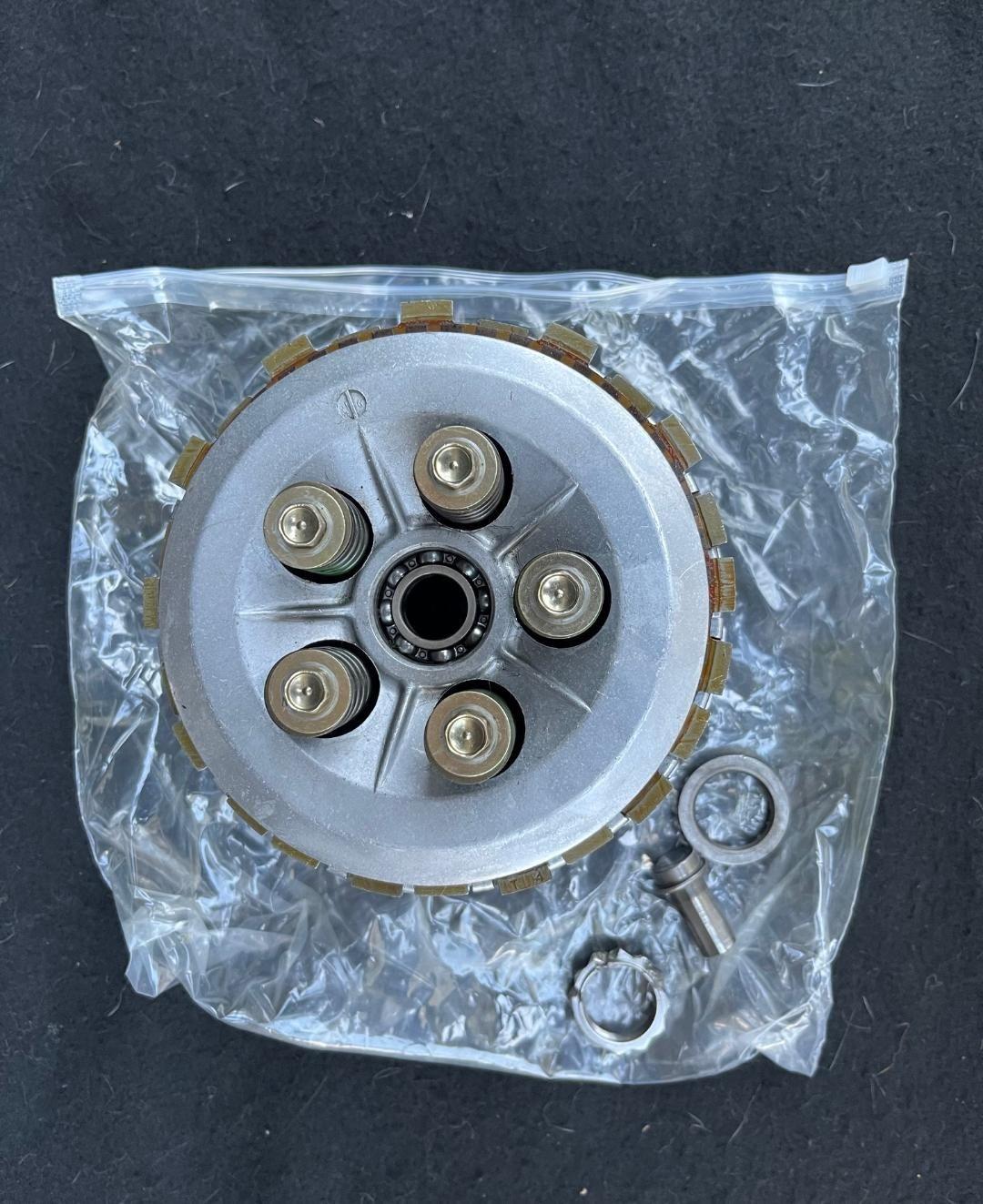 OEM complete clutch assembly. Very nice shape. Real nice spare to have as these are usually toast if you drop the bike on the left side. SOLD