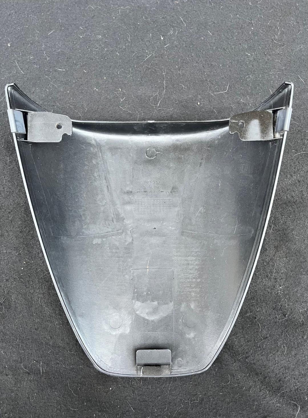 OEM solo seat cowl/cover. Excellent condition. NO cracks or broken tabs. Original '99 Mute Black Metallic is in very nice shape with a few light scratches here and there. Original solo seat cowls in nice shape are also getting pretty difficult to find. SOLD