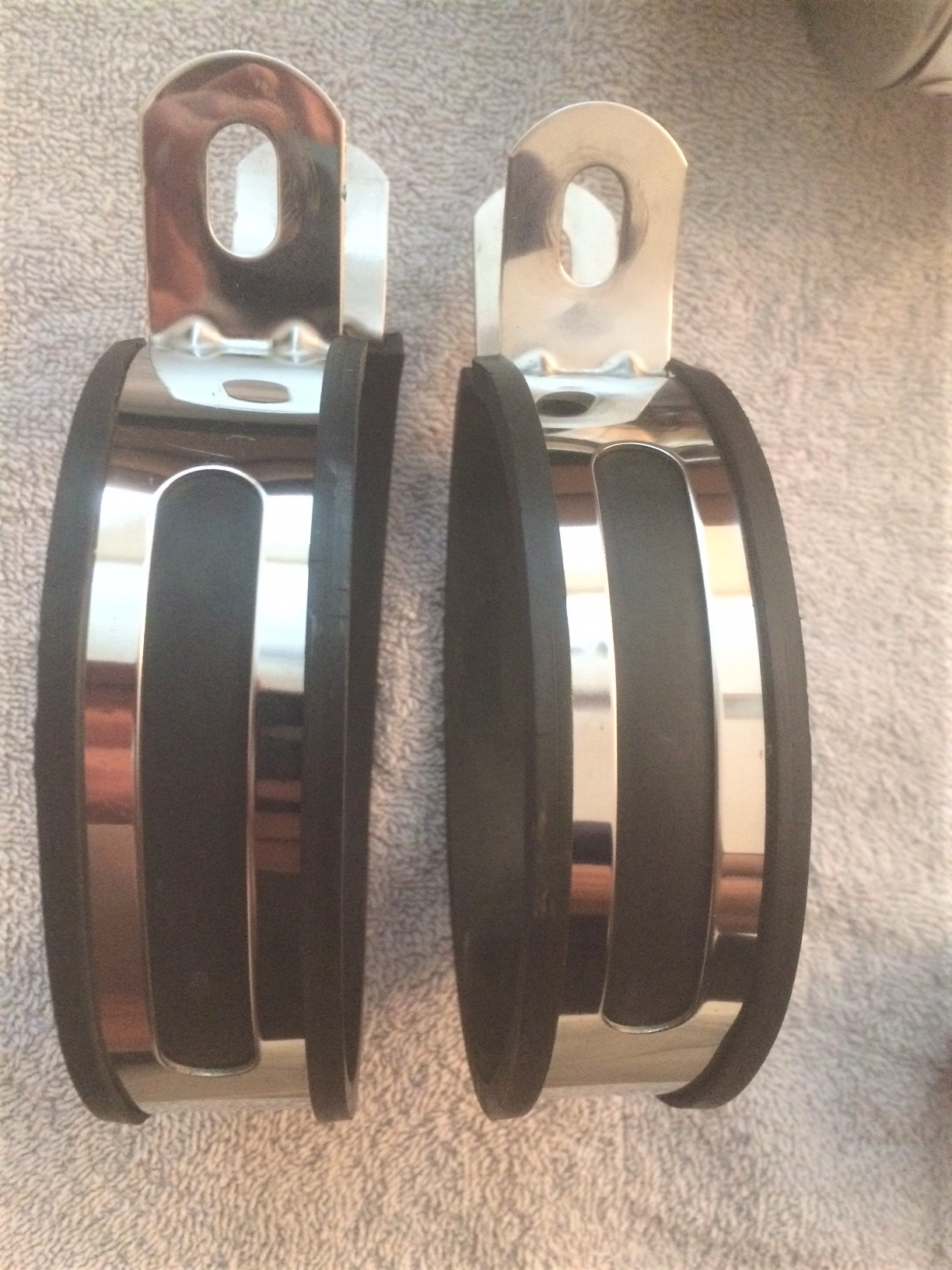 No idea why he left them on there. They're not needed for standard low mount pipes and aren't part of the Delkevic or any other low mount kits. He said he changed them out from Staintune high mounts so he must have left the spacers on there. I hadn't even noticed that. Looks like a wheelbarrow lol...