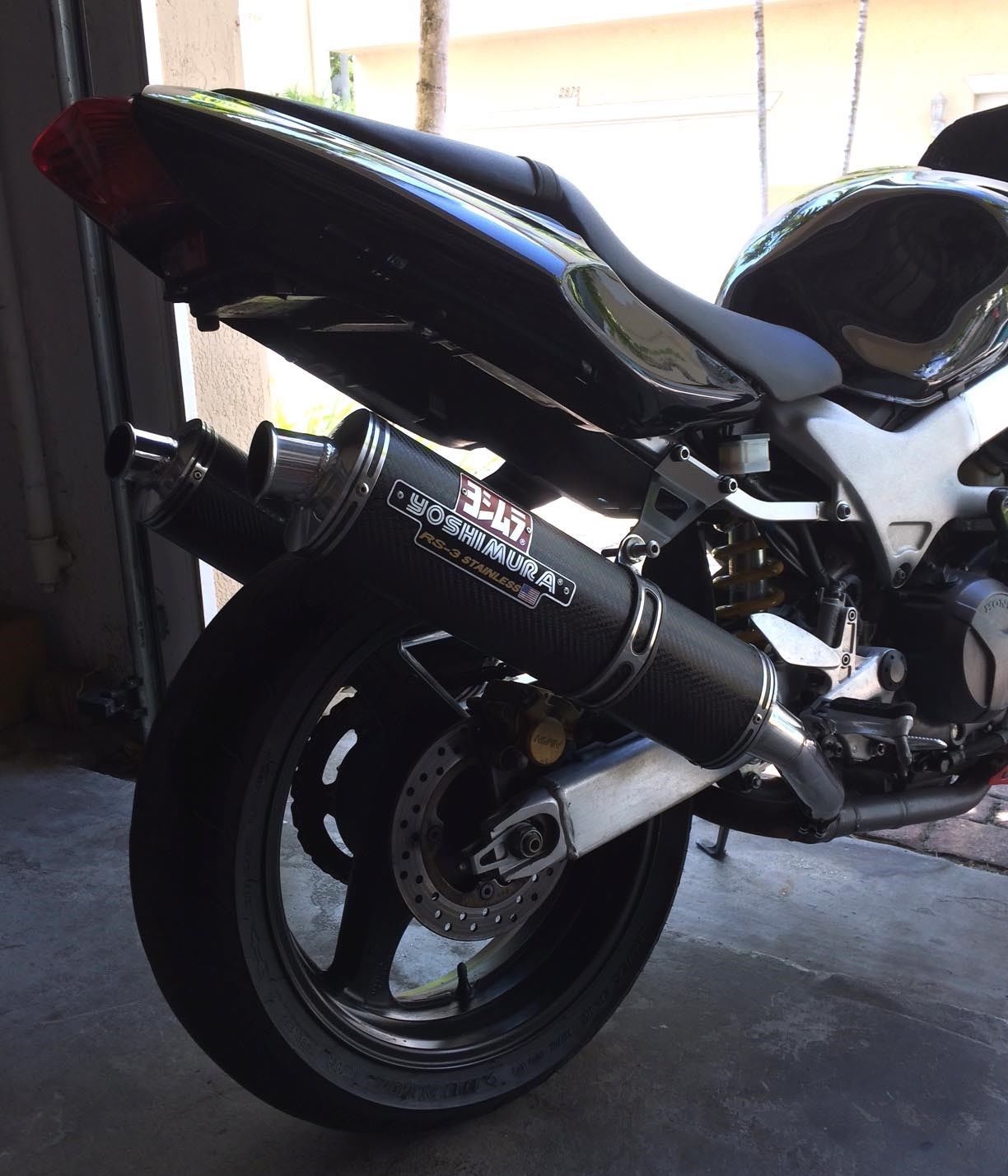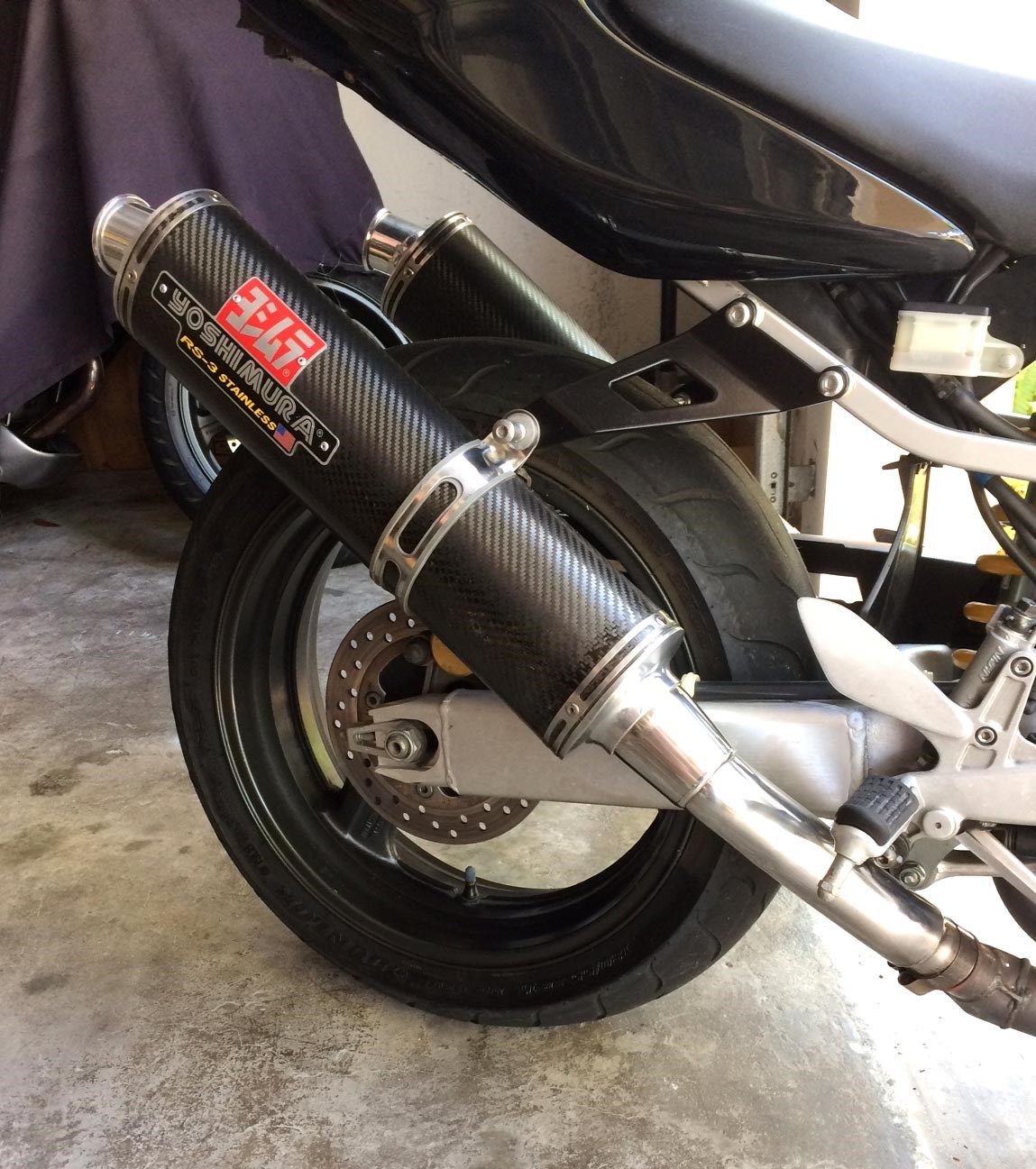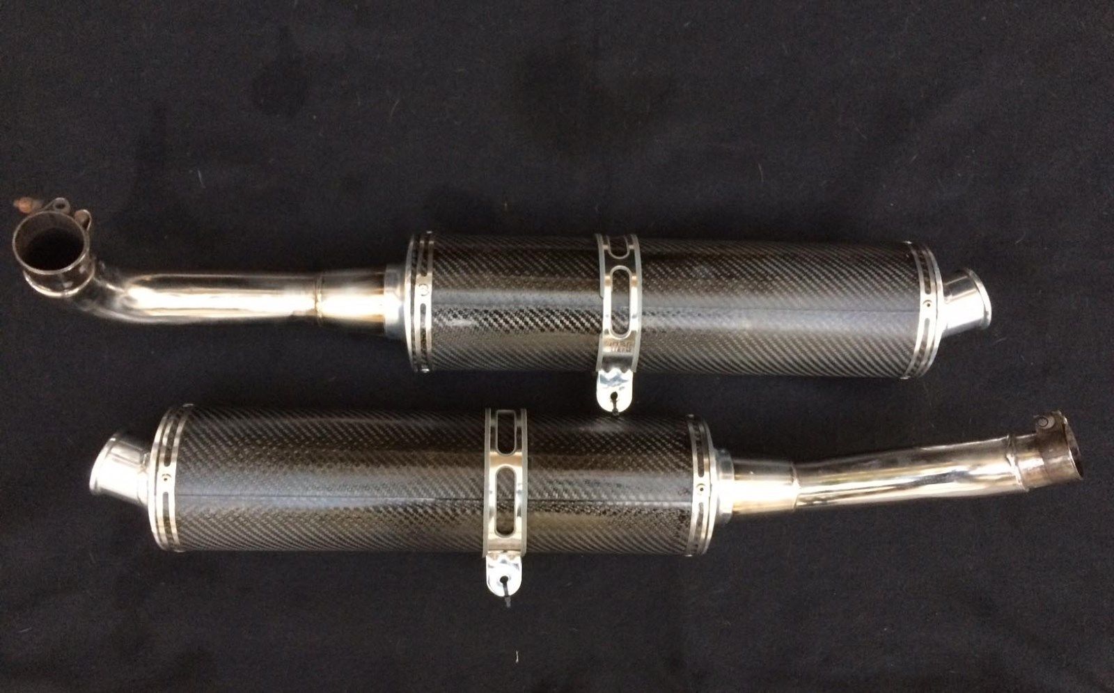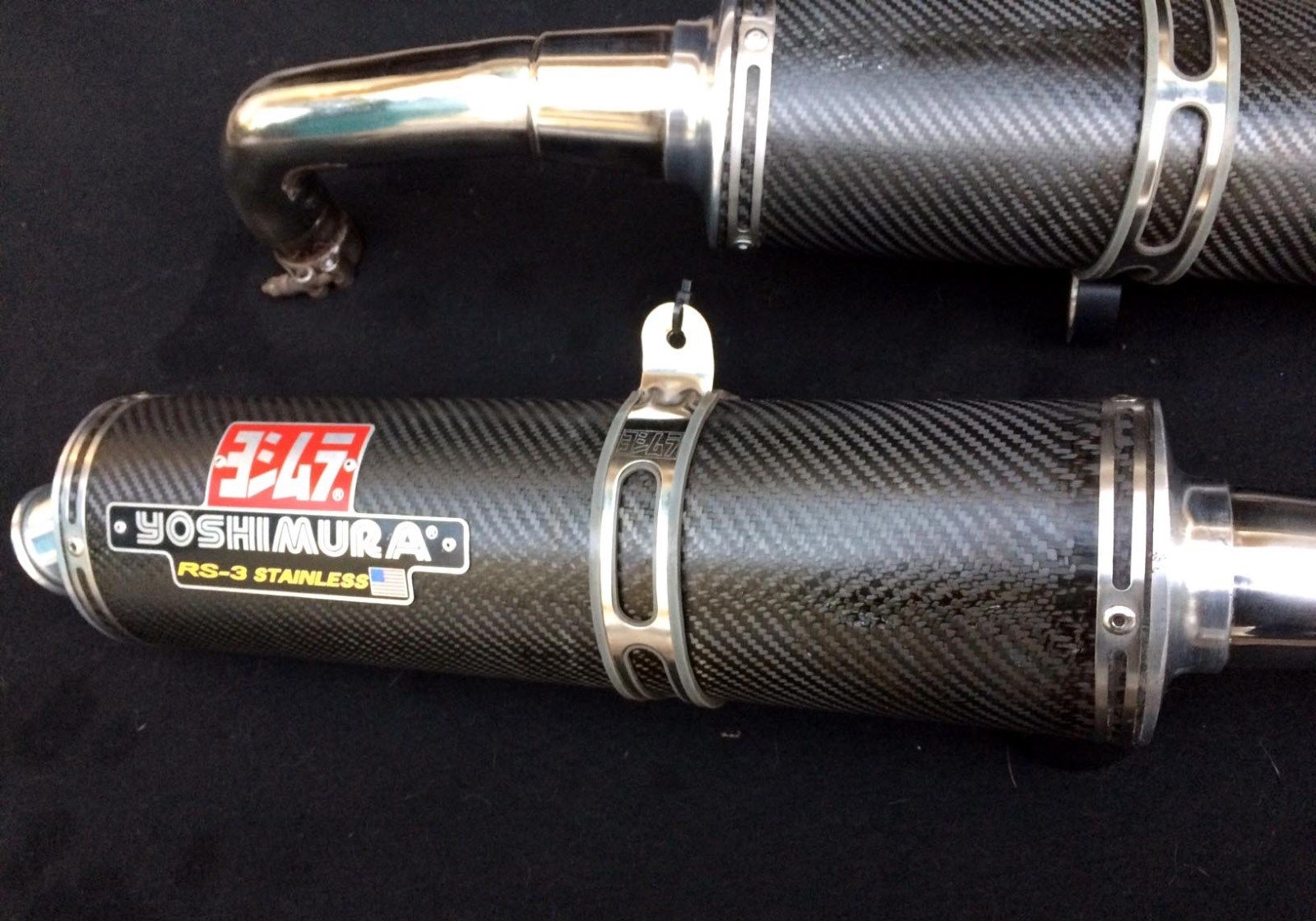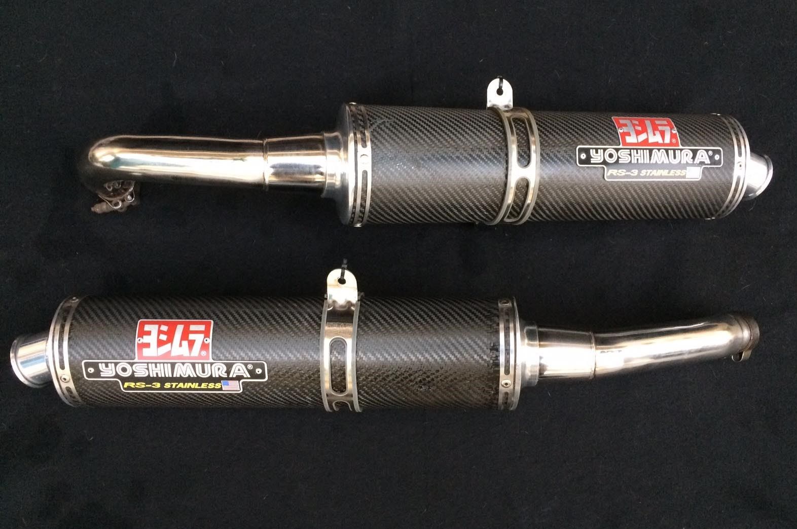SOLD SOLD SOLD Nice pair of Yoshimura carbon fiber slip on exhaust mufflers. Removed from a bike I recently bought and I am not using them. Gave them a quick cleaning but I don't know their history/last time they were repacked/etc... Please see pics. Obviously these are getting harder to come by as they're no longer available new (I'm sure a few TL guys would probably kill for just the emblems). Some light wear and tear but pretty nice overall condition. Carbon has a few surface cracks, mostly on the left muffler, mostly under the hanger straps that you won't see.