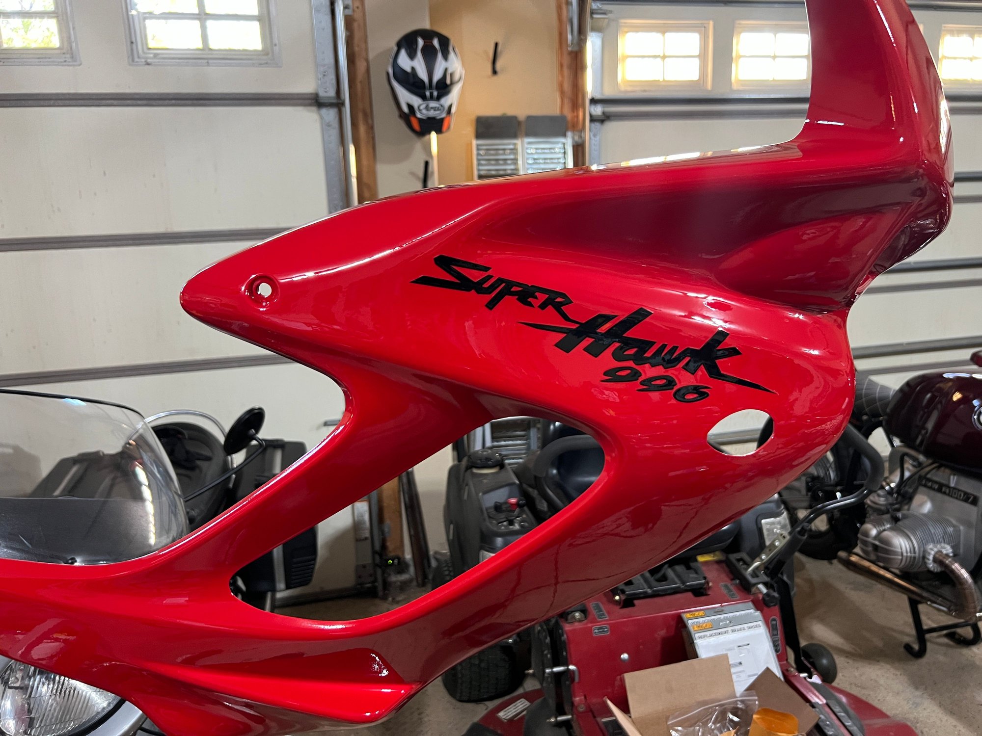 I managed to score one on eBay. I am in process of repainting the whole bike so color didn’t really matter. The paint that I ordered is just off enough from the factory red (despite ordering the correct paint code.) that I can’t skip anything. I’m finished with the fairings. I need to tackle the tank, fenders, and belly pan next warm day we get.