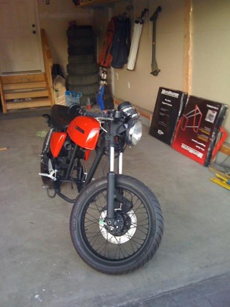 @ 7more7, I could't even hazard a guess as to how many hours I have into her. I guess that's something I should have kept track of but I've just been slowly puttering away in my garage over the last 7 months and had the motor in a friends garage while we did the head since he has more tools and knowledge than I do. It's been a labor of love and I can't wait to get her running and have the first ride. If nothing else it'll be a unique bike and no one else will have one that looks like it.