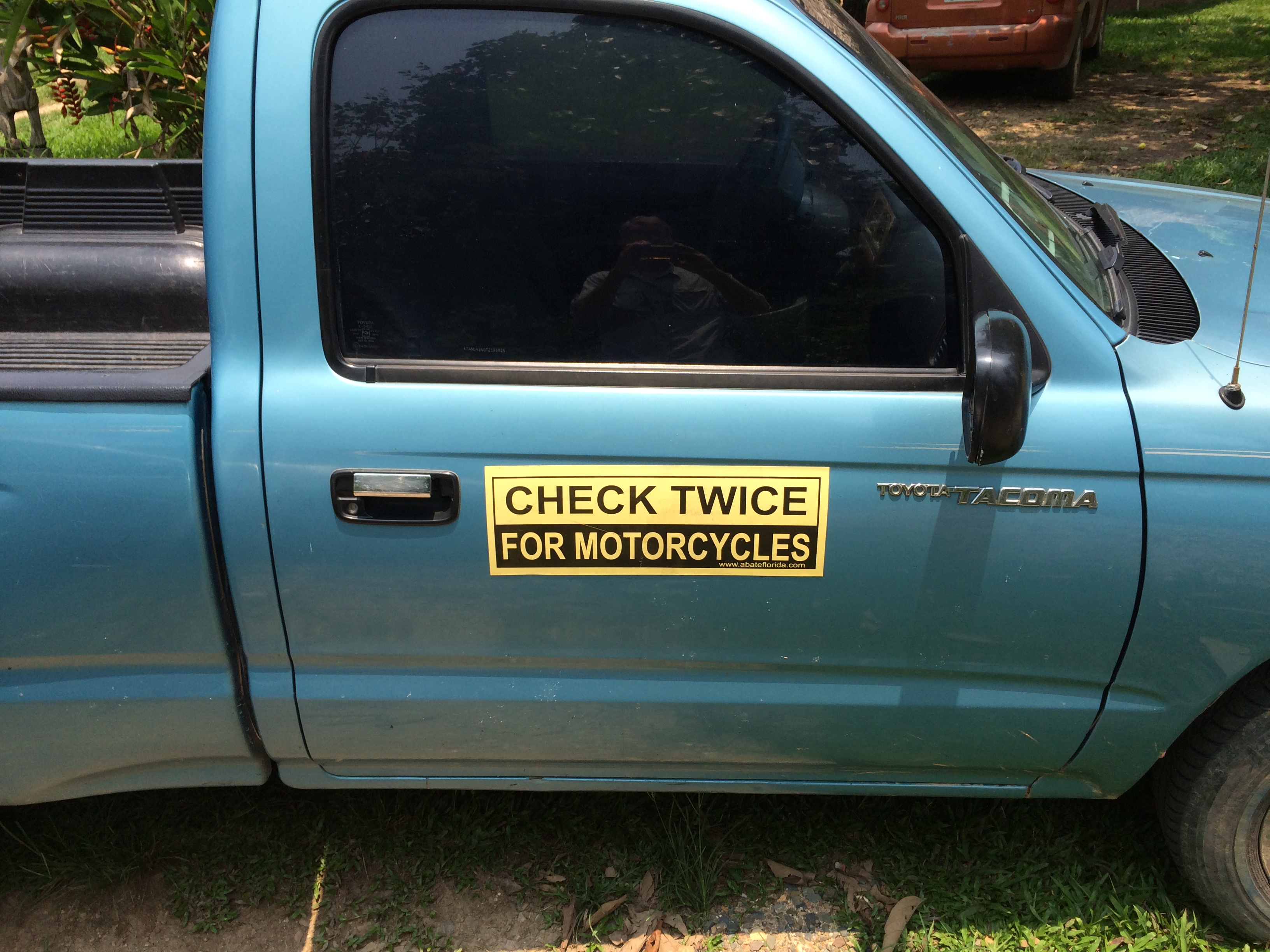 So many scooters and small bikes I was surprised to see this on the sides and back of a pick up truck