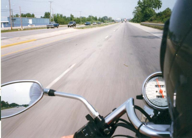 The first picture is after I put clubman handlebars on it (hard on the wrists, but turned WAY better). The second picture was taken by my best friend, while on the back, in Chicago right after Navy boot camp (1995). No helmet law, and we were young and stupid.....