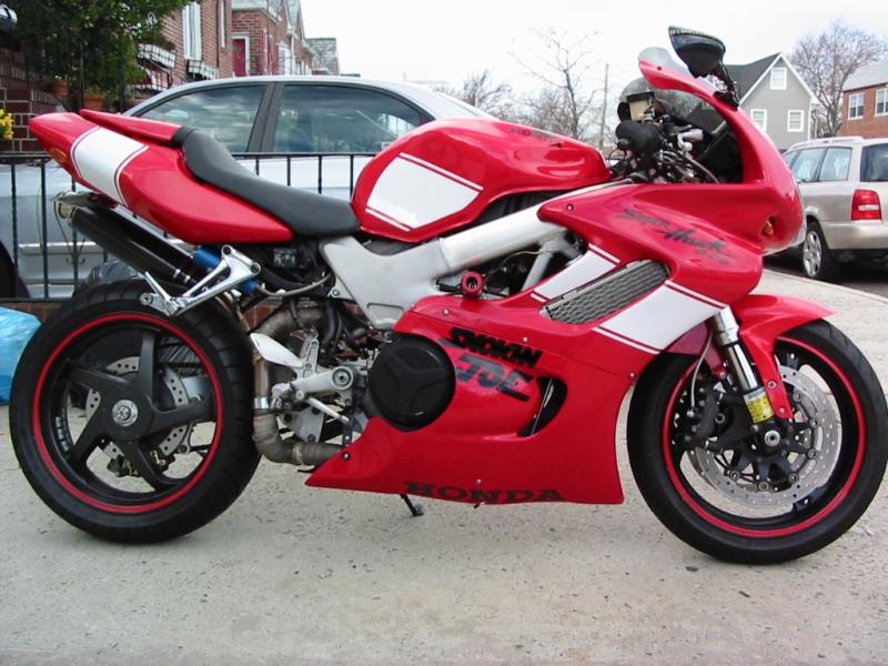 When I look at your bike, my eye is drawn to the VTR forks , standard swing arm, VTR shock, low aftermarket exhaust and THEN a more modern looking fairing and what is an iconic looking tail...but whose lines I don't personally like on a VTR,, but of the ways I've seen that tail done on a VTR I like yours the best.. I think you got the angle perfect.. it flows well with the rest of the body work.