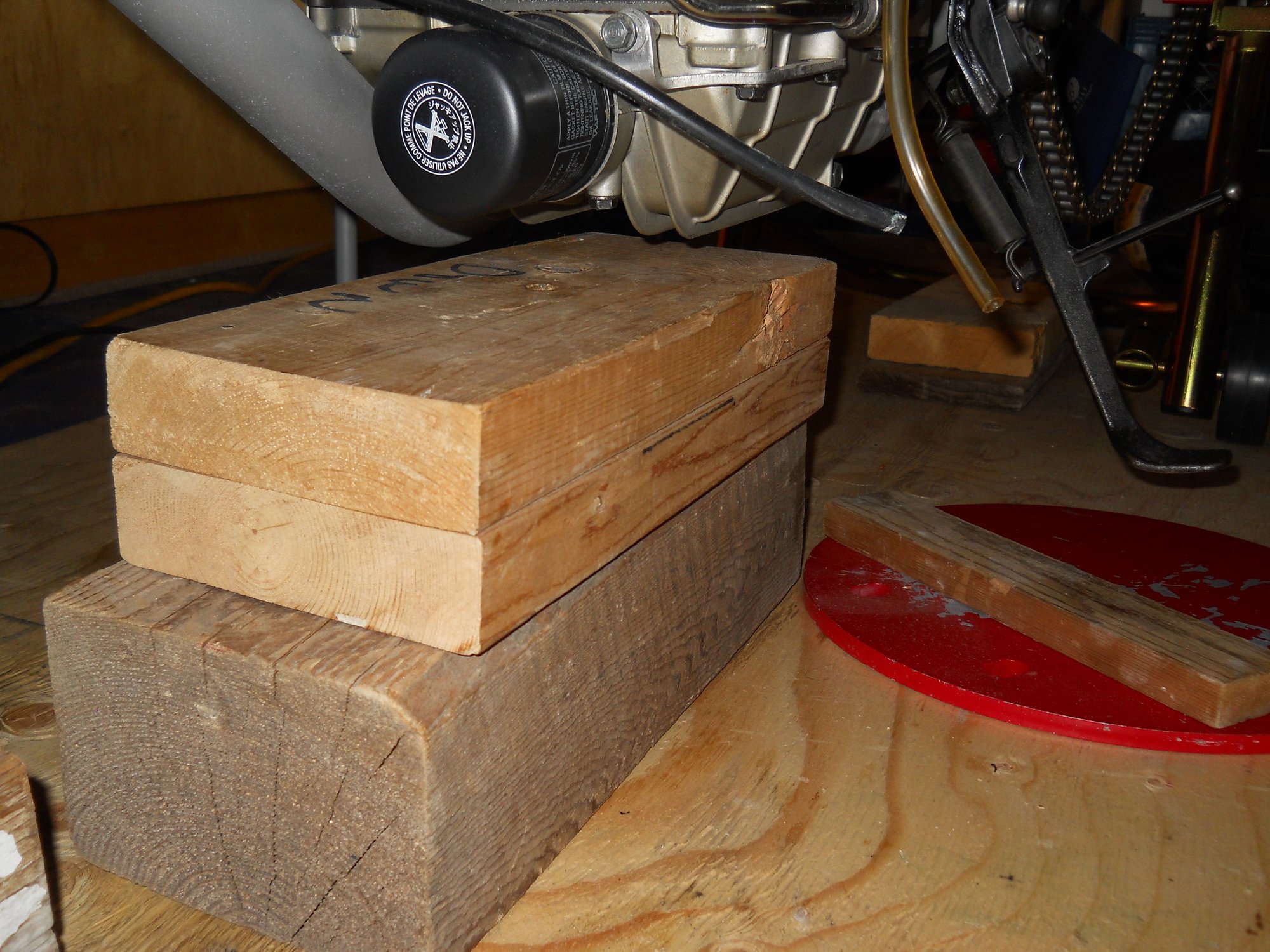 I lifted mine like this for replacing the side cover, i had just got the bike and didn't have a paddock stand or anything else at the time.