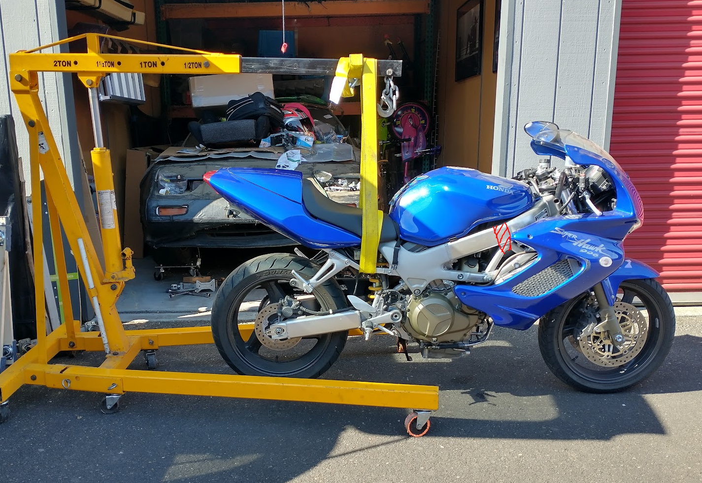 I am completely going through the whole front end of a 1998 VTR1000F. I have the hoist but exactly were dose one hoist from to allow me to remove the steering stem let alone everything else? .
