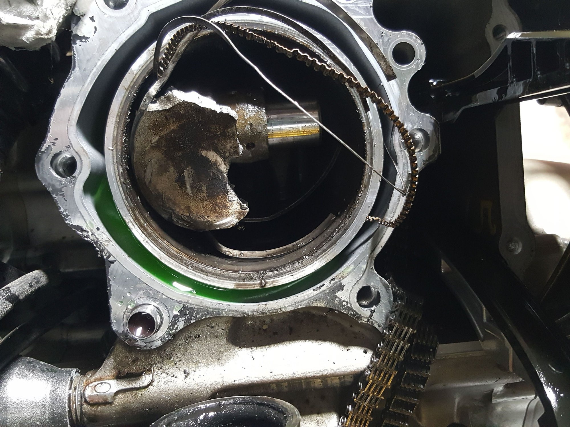 Oh it'll live again, but inside the V is a fairly low tech combination of cheap parts. It's kind of a miracle it works as good as it does. Either way, this won't be the first or last cast piston give it up under extreme conditions. Hell I had an SRAD 600 once that let go of 2 at the same time in a very similar fashion one fine weekend at Moroso. That bike had no mods, excellent maintenance and a known good service history but absolutely did not hold up to 6 launches followed by full throttle runs backs to back. Talk about an eye opener, 4th gear full throttle, BANG! I let the smoke out.