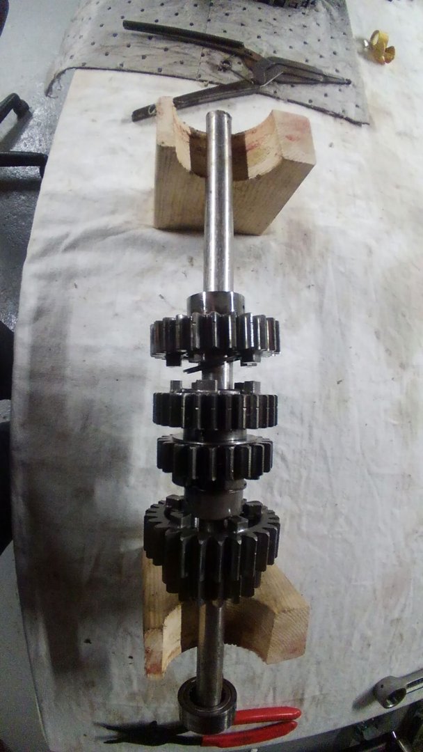 Main shaft in progress. I take 1 piece off at a time, clean, and reinstall. One gear has a bit of wear, luckily I have an extra.