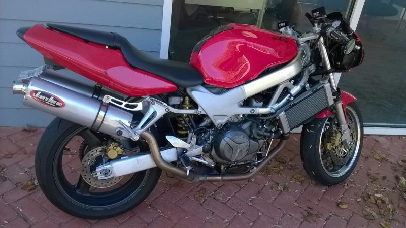 It's a red '98 for $2000. 24k miles. The fairings are in rough shape, but I'm going to fighter it anyway. It does have Ape's and he did the Pair, or de-pair, or whatever. I'm working on that thread now...