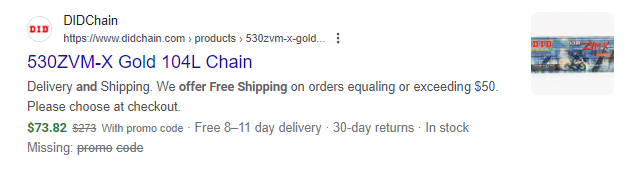 When I google search the PN the same link comes up but the google desc says 73.82 with promo code,