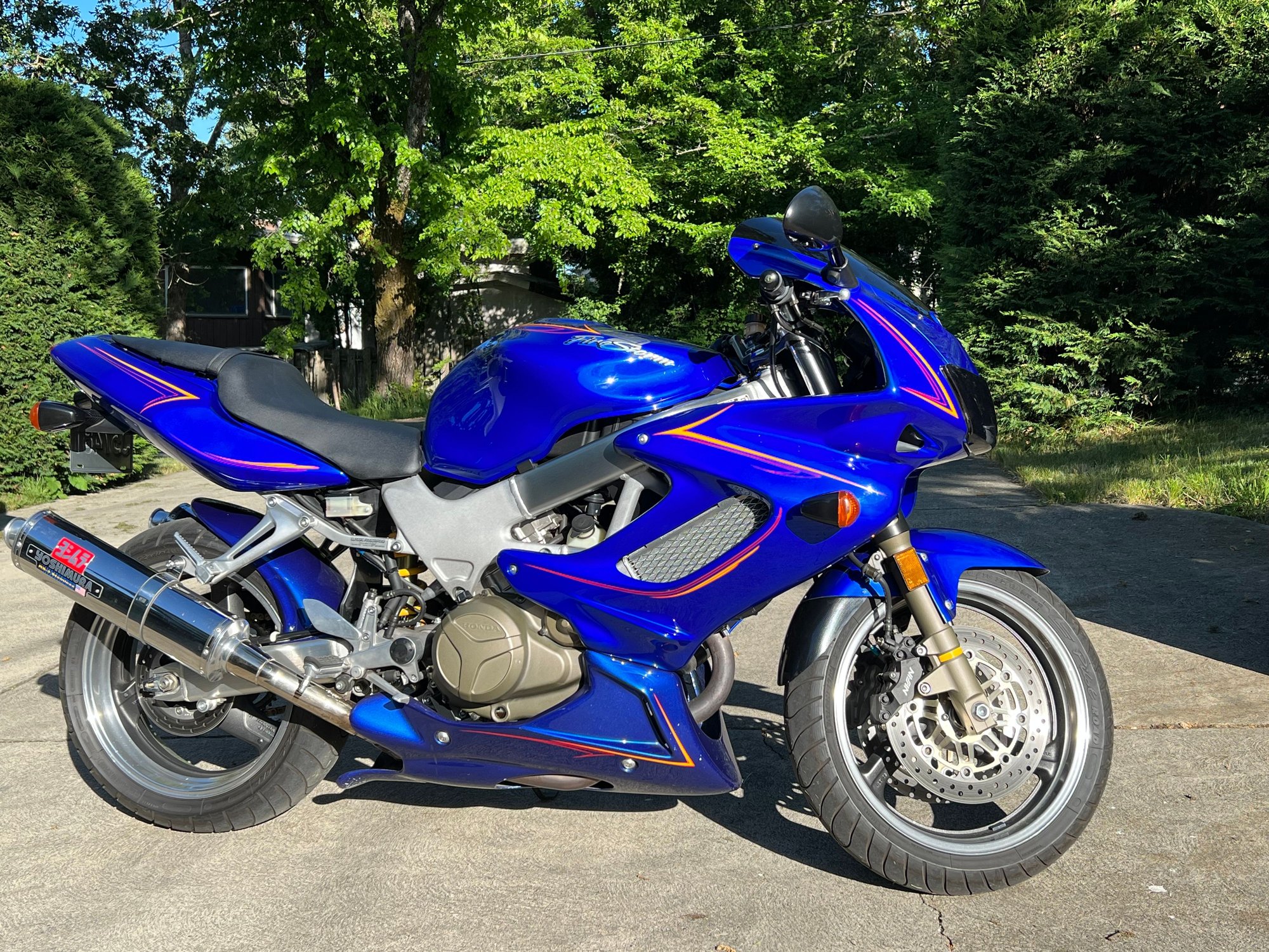 I recently bought a blue 2003 with pinstriping done by a well-known pinstriper and previous owner of the bike. It’s in mint original condition with 22,000kms (14,000mi). I didn’t like the pin-striping when I bought it but it’s growing on me. Any idea how I would remove it without damaging the original paint if I decide I want to remove them? It’s not under clearcoat.
