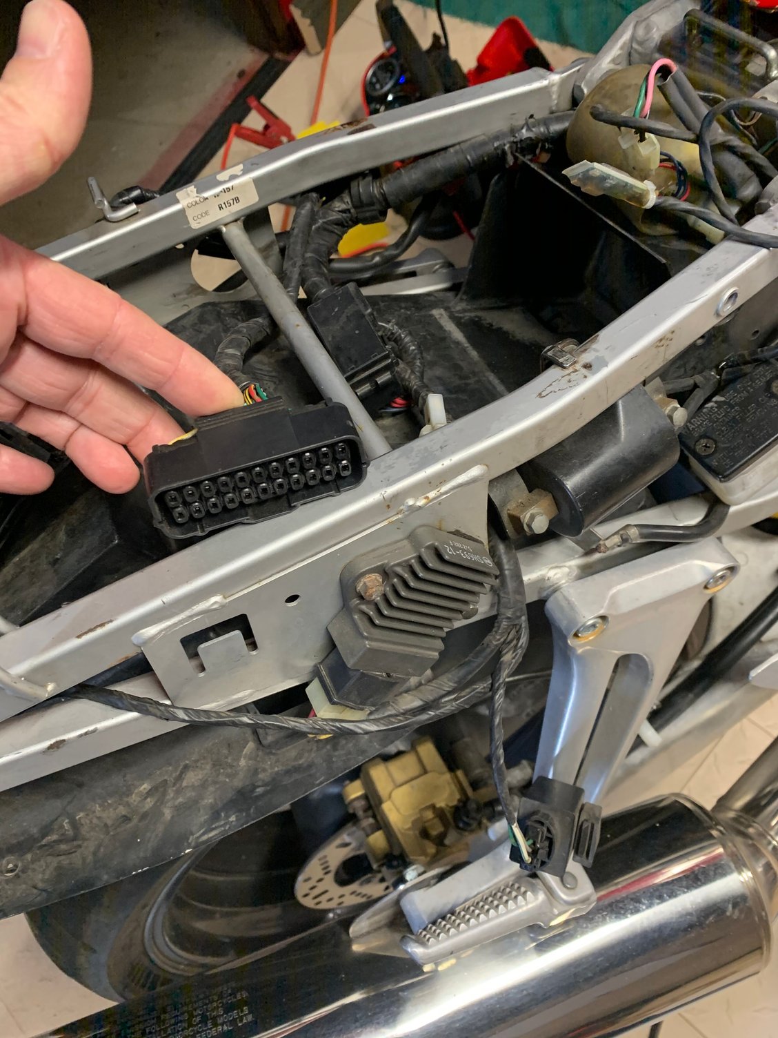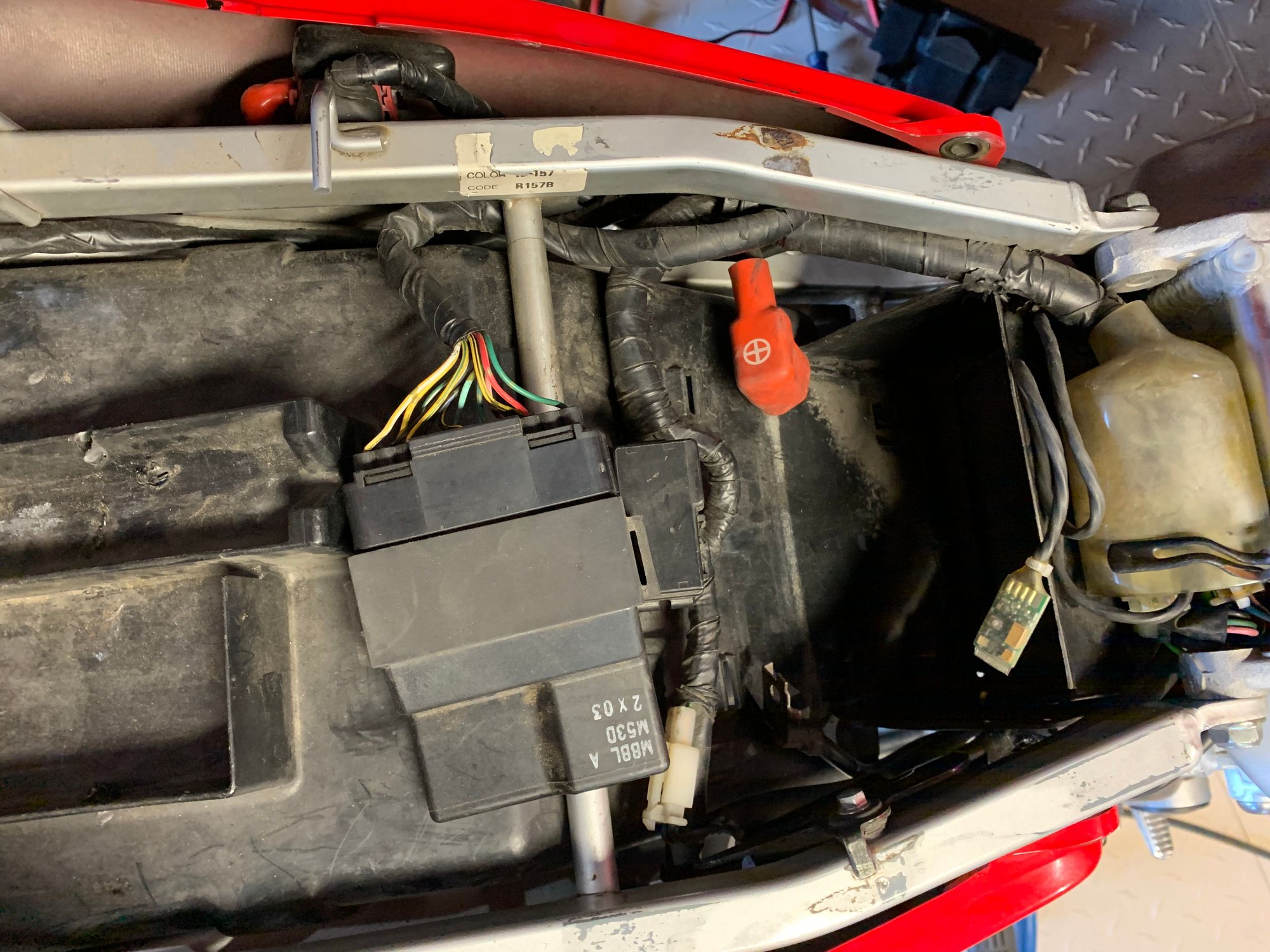 I just got my first Superhawk after years of VFR's. I'm pretty sure the prior owner moved some stuff around. Does anyone have a pic of where the ECM is supposed to be located. It was just kinda loose directly under the seat. I see the two slot tabs but no where to put them.