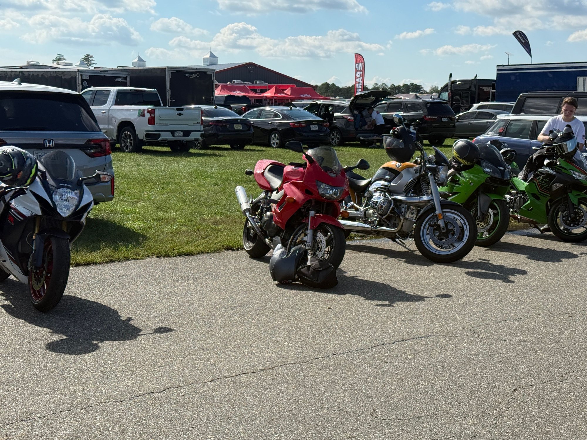 My 61 AJS G80CS Pushrod 500 Thumper single Cafe Racer, 76 RD400 Twin Smoker also carbed & air cooled high POWER TO WEIGHT RATIO THAT WON DAYTONA AGAINST BIKES +TWICE IT'S CC, of course our WC DOHC 4 VALVE 90° 996 V-Twins also with a high grunt to weight ratio, out of age order but First UJM CAFE 81 Kawi GpZ550D1 AC DOHC Fastest Red 4banger, 88 Hondoo NT650 Hawk GT WC 67° V-Twin SOHC 3Valve head TwinBeam ally frame with ProArm SS Swing arm stepin out under 400 pounds, my unfortunately long depated 72 Kawi H2 MACH IV AC TRIPPLE 2SMOKE which wasn't red but tricked so much to the max there wasn't anything more to mod and someone made me an offer I couldn't refuse long before the current blown DOHC 4VALVE HEAD H2 4Banger was drempt up as a show of pure EXCESS, andnd finally my youngest 2smoke WANABE ripper Triple with FI, throttle modes, TC and ABS that puts out the same HP as our VTRs but is lighter and shorter that some say loves to Wheelie...