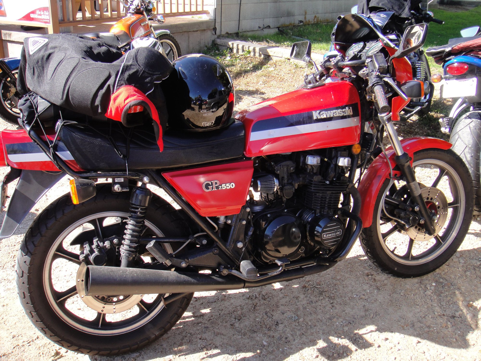 (The black stuff on the rear cowling is rubber to protect the paint from my soft saddle bags. The bags were at the motel when this picture was taken.)