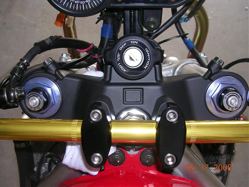 Drilled the top triple to add Superbike bars on a drill press and came out nice...