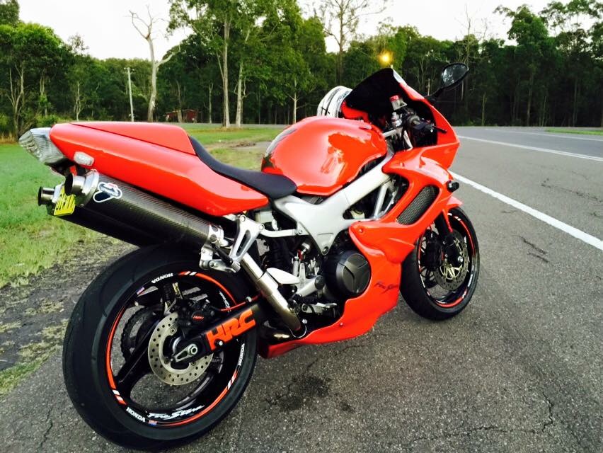 Here is my 99 mod Vtr Firestorm as we know it down here. Mods include upgraded fork springs CBR stick coils, jetted carbs, CBR front calipers, late model brake and clutch reservoirs. Quick action throttle, rear shim mod, puaig front screen, braided lines and and heap of soft mods like painting of swingarm, calipers, rear swing and shock all linkages etc.