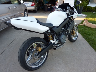 - Custom paint removal on right fairing and tail (approx. 2 ounces removed by P.O. to... um... better balance the bike?)