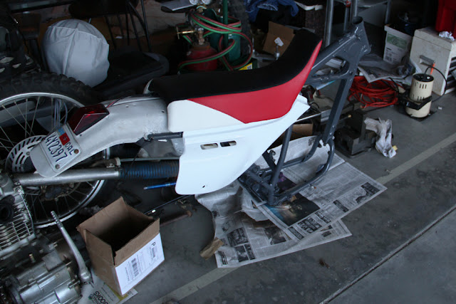 Quick derail-- The bike in the garage is an 88 XR600r that I've been restoring. When I bought it, it barely ran, barely stopped, and the forks were like a cartoon oil derrick. Now it will have an FCR, Ricky Stator, and various goodies... I can't wait!