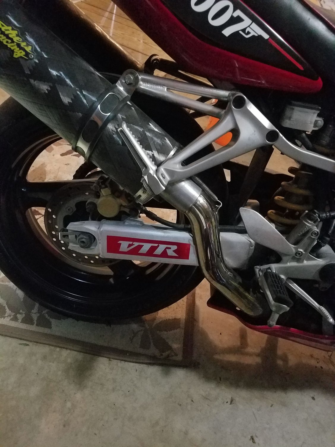 years ago (previous vtr) I had the spaced out oem pegs like yours, never had a problem. At some point I recall finding a set of gsxr600 passenger pegs that had a different shape, allowing for a good fitment with the high mount pipes. I had to reem out the holes just a little bit and then they fit. Does anyone else recall this mod?