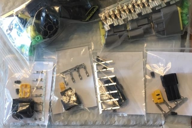 So its a 3 way connector for the headlight for the larger current of the headlight and a 6 way connector for all others.. Since those are all LED, I can use 22 ga wire making the bundle much smaller then if I had done a 9 way plug.