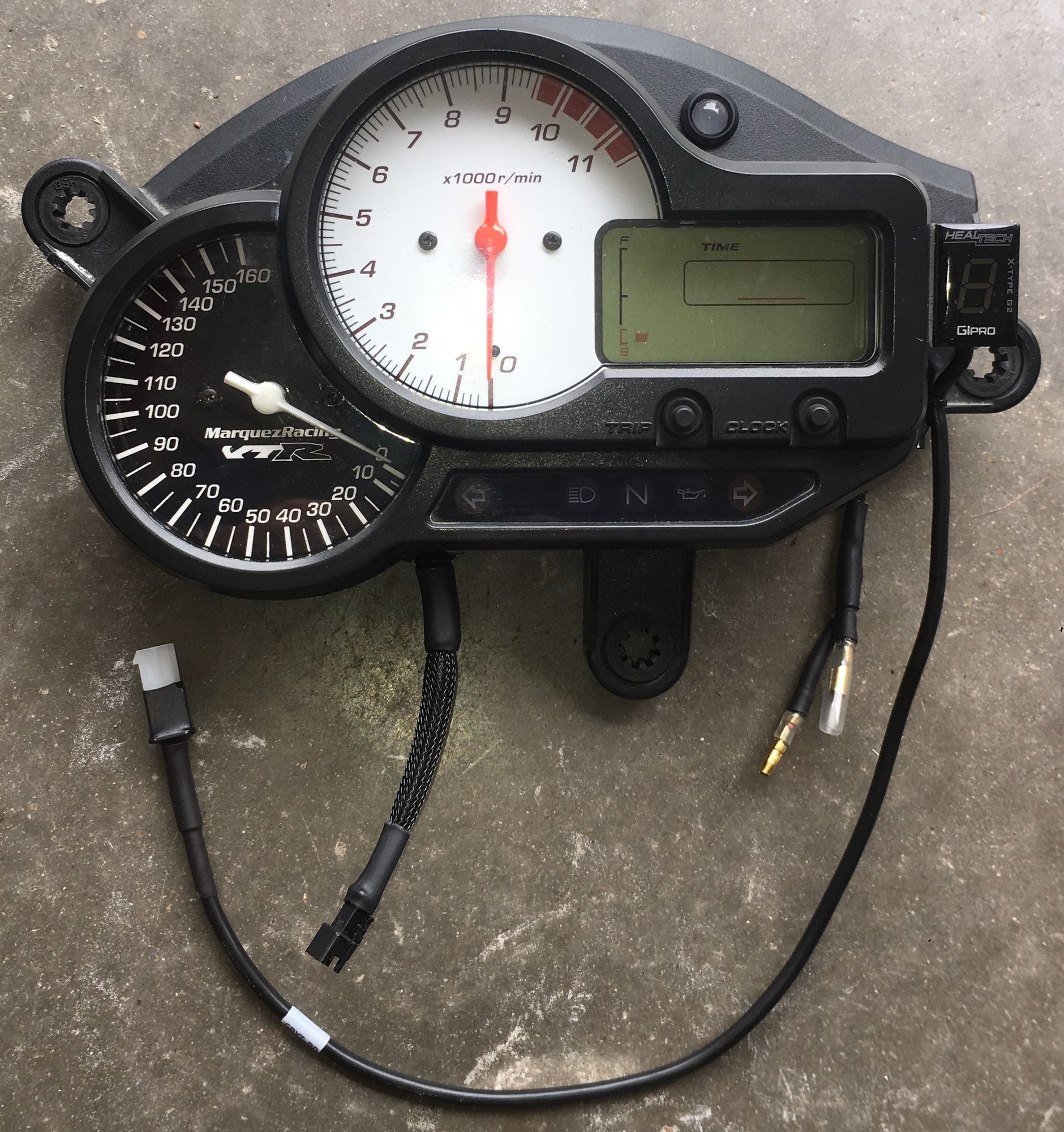 Then just swapped on the 600RR dash. Super big easy to read digital speed, temp and big fuel gauge.