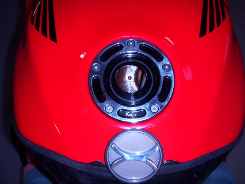 I have been looking at those keyless gas caps on e-bay and couldn't decide which I liked better. End up getting one of the Kafer one's and I must say it is a very nice little piece of art. They have them available in all different color configs and I did like the red but I may be going either all black or all white with the bike so I got the platinum/titanium whichever which I thought would go good with whatever color I decide later. No more pulling key to fill up