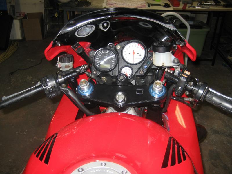 /\ That's my only issue with the Swatt's. I ended up drilling and tapping a bolt into the left steering stop on the lower triple to ensure that my brake lever wouldn't hit the fairing. I had to swap the riser bars side to side too in order to mount my F4i M/C.
