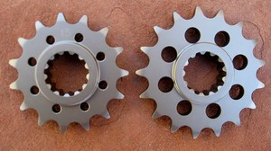The below photo is of two front sprockets, the sprocket on the left has 15 teeth, the sprocket on the right has 17 teeth.