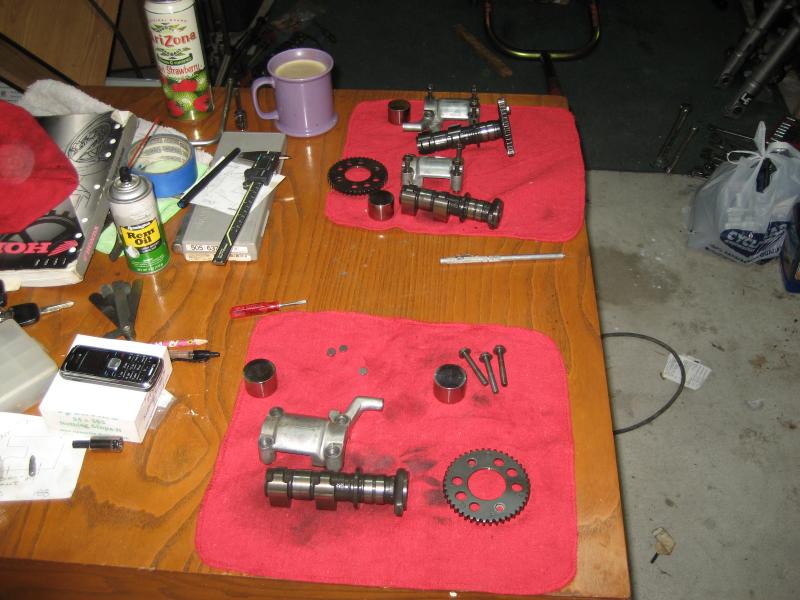 Dude! I was just gettin antsy to go out and pull/clean my carbs, slap in original size jets as I found mine were oversized for some reason by PO when I cleaned 'em last year, check valve clearances, drill out the the valve cover where I sheared off one of the pair valve cover bolts, hmmm.. maybe it's a sign, seeing as I'm like one step behind you on all this umm healthy activity, think I'll concentrate on my front wheel set-up instead, turned out a couple of bushings for the front wheel bearings in the CBR1000rr front wheel yesterday, to proceed with mock up while waiting for the new wheel bearings, the Rc51 bearings will fit right into the 1000rr wheel.