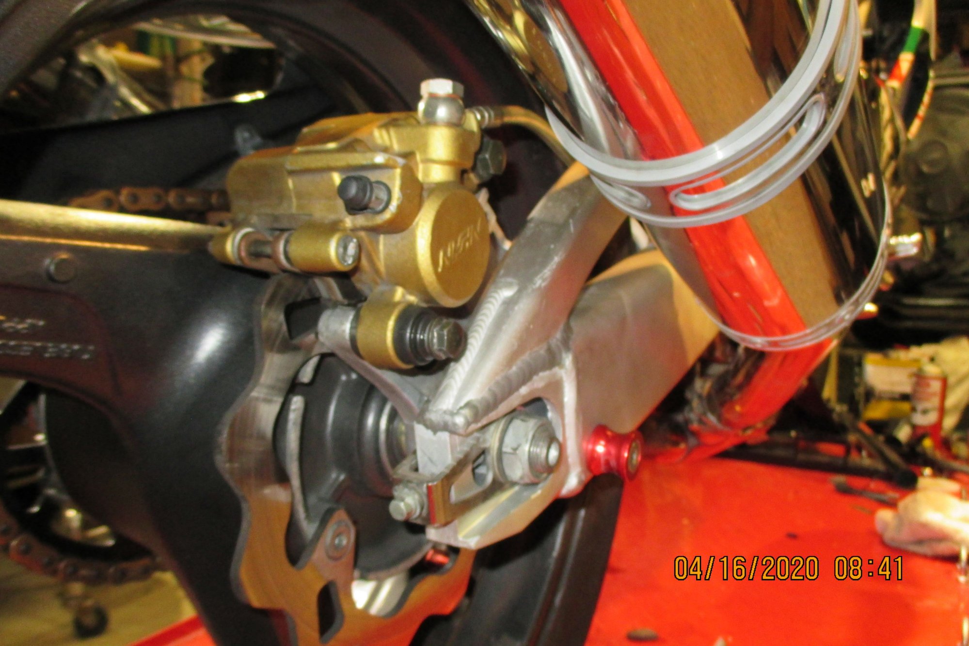 Viking, all you need are caliper bracket and the brace itself! Bit of cutting and fitting with flap disc. I did the same last year, the only ‘tricky’ bit is removing the caliper bracket guide from the 900rr arm and positioning it perfectly on the vtr swingarm. I also made sure that my tire didn’t touch the brace when Axle was adjusted to be all the way in.