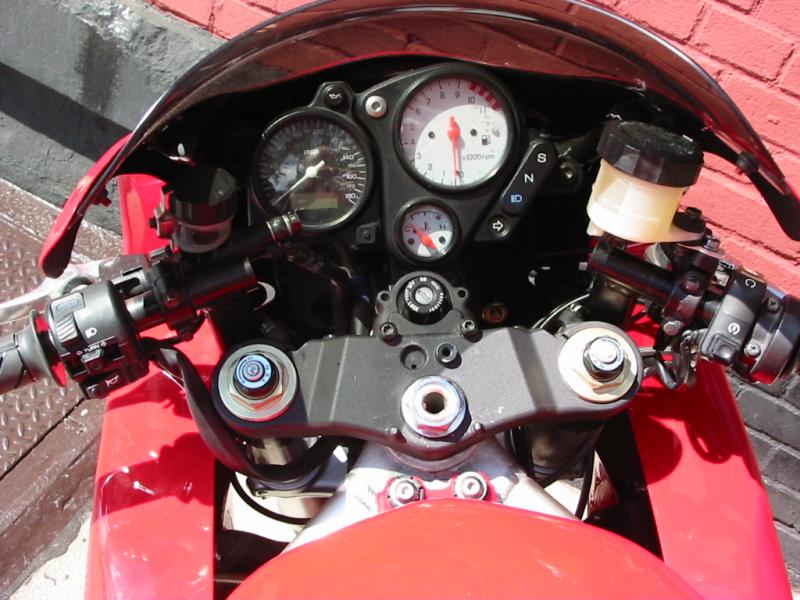 I really like the look of that dash. Not a big fan of the stock gauges. I'm wondering if I can be able to use the cluster off that 08 and get it to work properly. I'm thinking now after looking everything over that I'm gonna go with 954 triples as you said Tweety, Just need to get a stock lower triple with bearings and I'm leaning towards using a Vortex billet upper triple instead of stock. There is no difference in fork width between the triples on a 954 vs 1000rr am I correct? I was meaning to ask you Tweety, what was involved with getting your rearsets to work? I'm thinking about trying to make brackets up on the milling machine, just wondering if you had any specs or diagrams I could go off for measurements.