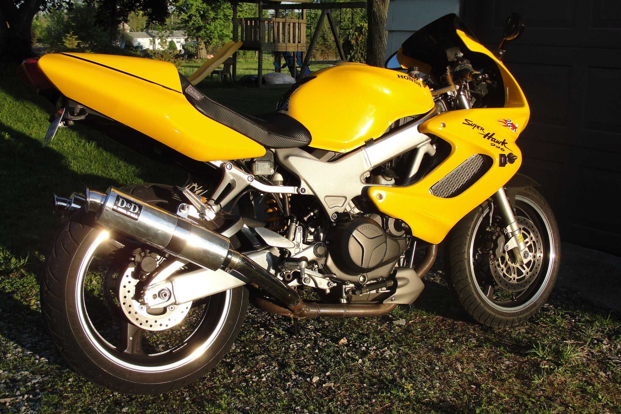However as was mentioned you don't want any exhaust muffler less than 12" on the Superhawk. It becomes insanely obnoxiously loud (think Hatley Davidson with straight ratty drag pipes)