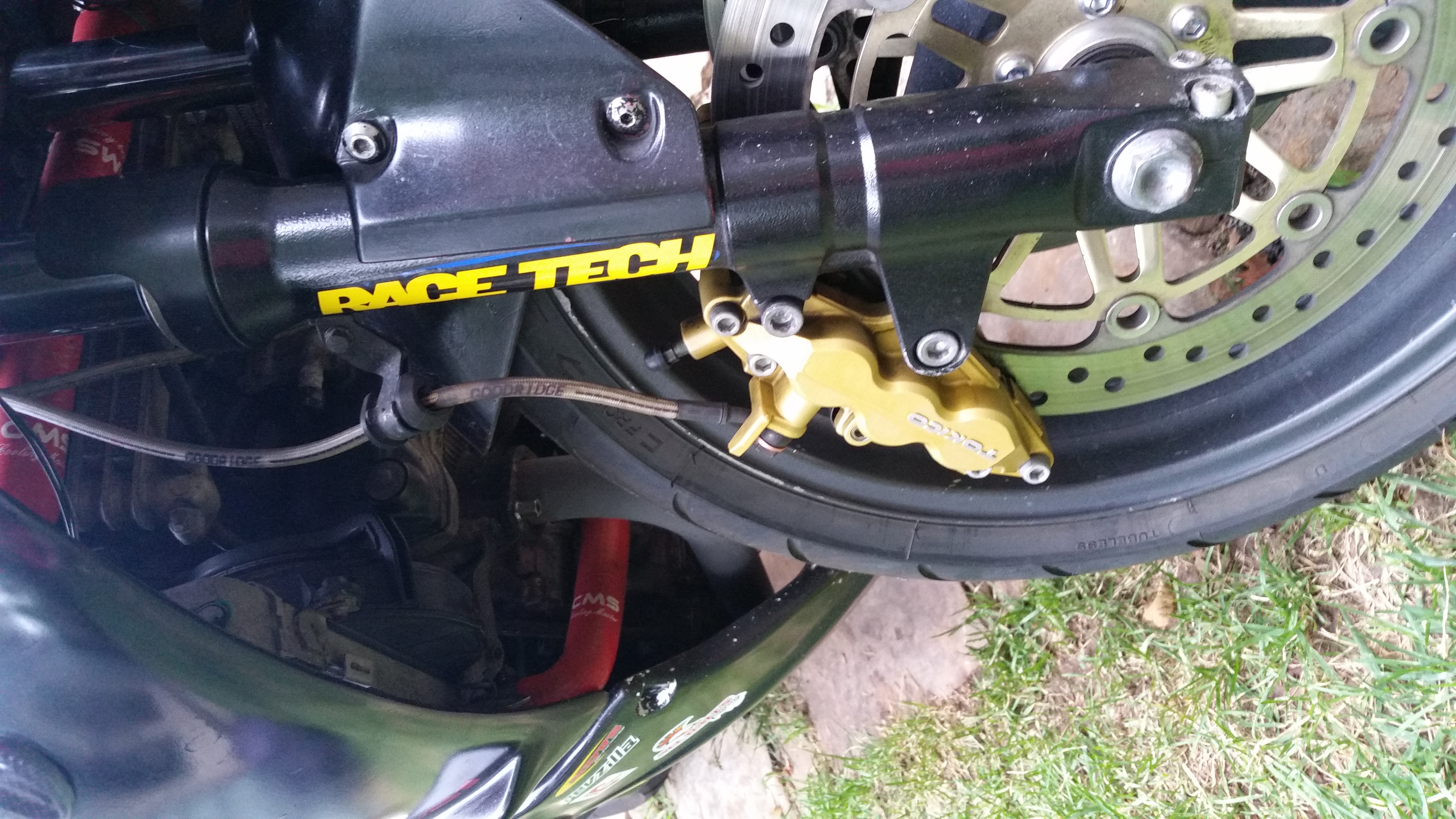 Wow! After the hundred mods done to my '98, the '01 gsxr brakes (133.00 ebay plus 35 pads) this mods had to be in the top 100. Ha. Serious, the feel at the lever, moderation, and power is way better than stock. I have been running stock calipers w/good pads and a f4i master and s/s lines for a couple of months, just got to the calipers. Incredible. Took 35 minutes, including install of pads and flush w/ dot 4.