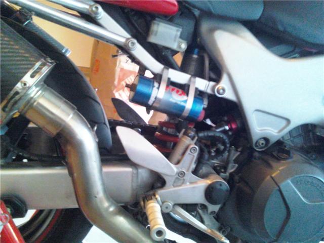 I had to do it...even though it's got a bad seal I still needed to pop it in to see just how much it would change the SH's rear end. I'll tell you what: every single nut holding every single bolt in place was a nightmare to break loose. I rounded one so badly I thought I was stopped in my tracks, but a trip to Sears for a 'rounded nut/bolt head removal kit' and the day was saved. I was using a 6-piont socket and still mutilated the nut holding the liknage to the engine (the one with the allen bolt that hits the shift linkage on the way out). The whole installation was a bit more involved than I expected, but still not very difficult by any means. And since I know I'll be removing it sometime soon to have it rebuilt, I put the shock's lower mounting bolt in the opposite way so it pops out into thin air rather than sliding out and stopping dead against the damn exhaust header on the way out next time. Why was it assembled like that from the factory? Anyway, I can't believe the difference a good shock makes. It's not even set-up specifically for me and it is a huge improvement over the stock unit. I just wound up the preload a little and put both compression and rebound at the mid-points and threw it on. As I received it, it was a few mm longer than the stock one removed so I didn't mess with the ride height at all. It soaks up the small bumps better than the stock shock could dream of doing and it still has a stiff feel to it at the same time...how does that even work? The 1st pic shows a generous portion of fluid on the piston. The 3rd pic is of the stubborn nut with battle wounds. Not sure what else to add besides that I wish I would've taken pics of every step of the installation...maybe next time.