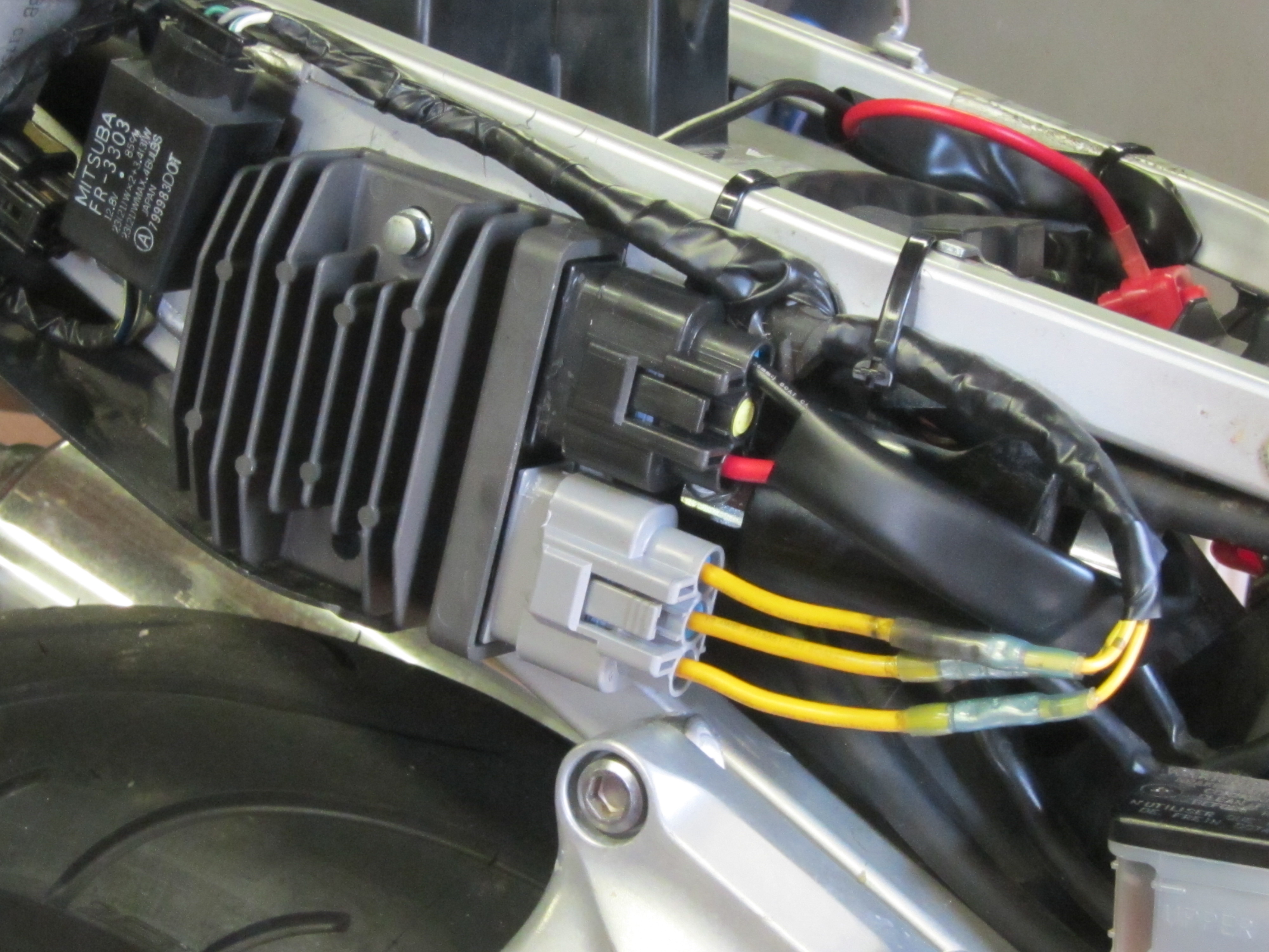 As far as the existing pos & neg wires from the old VRR, you can also use them for other circuits. The green wire is a perfect ground for another circuit, and the red/white can supply power to another circuit if you add an in-line fuse to the circuit. Neat thing about DC, the red/white wire was receiving juice from the VRR but since at is other end it is connected through the main switch / fuse to the battery, it is hot only with the ignition on and thus needs no relay for a powered-only-with-ignition-on circuit (if I recall correctly when I did use it and he green wire for another of my 7 or 8 auxiliary power circuits).