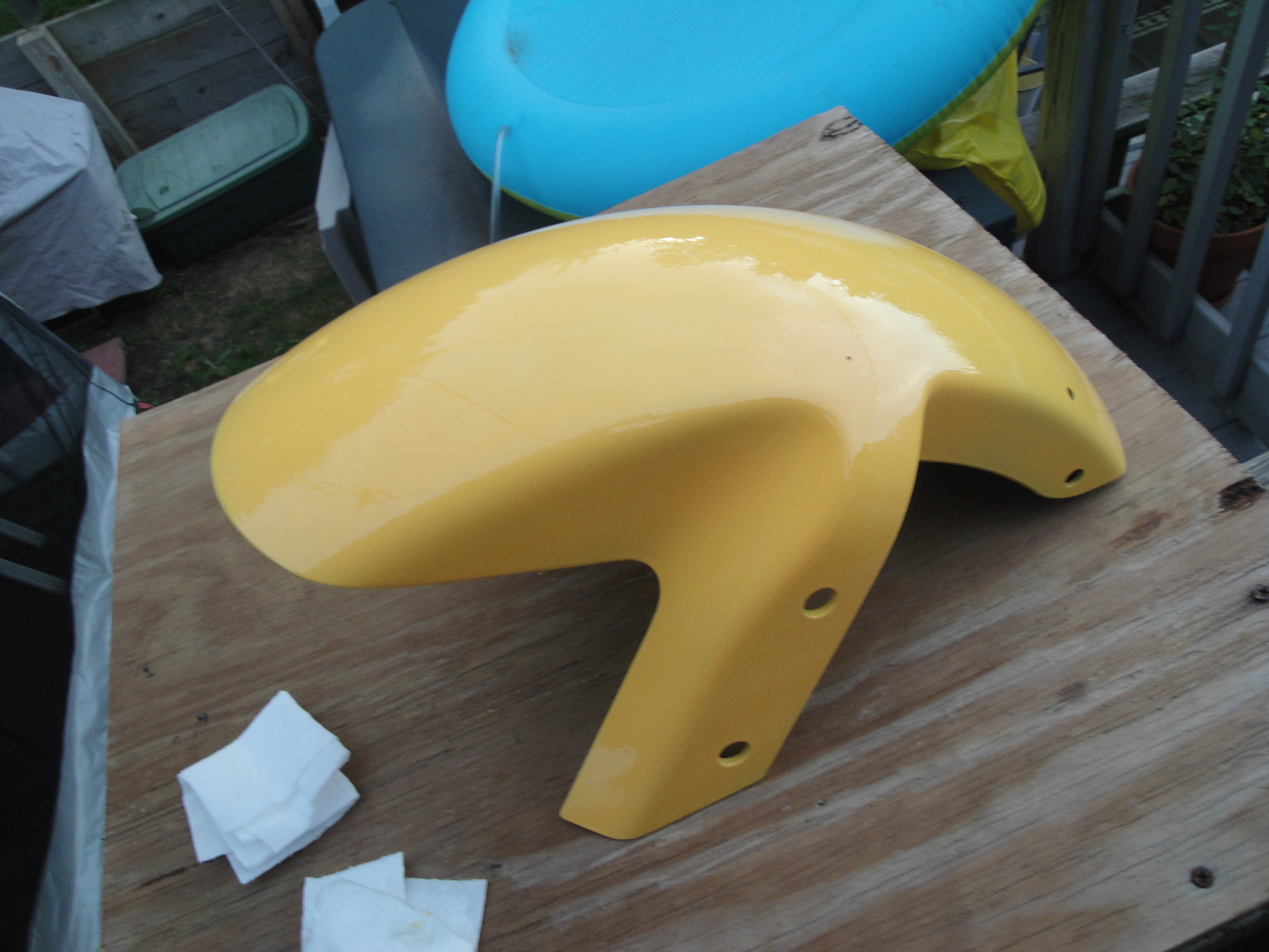 Here is the fairing now. Only slightly more yellow than my arm and shoes the way I paint.