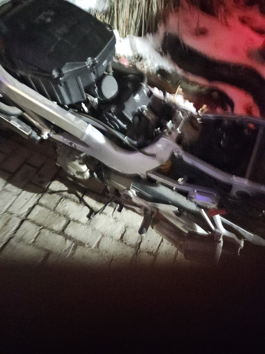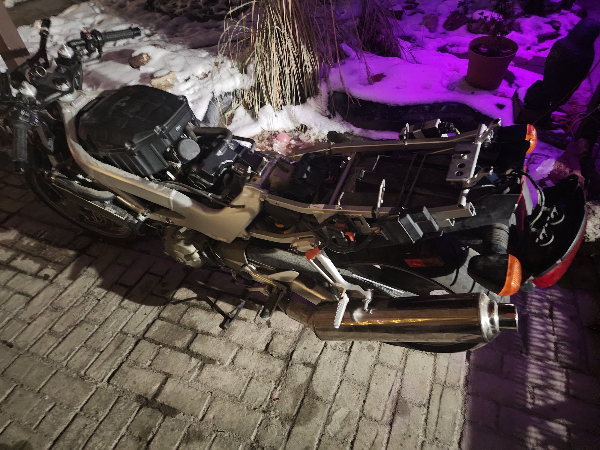 No plastic whatsoever no fuel cell no battery.....but did have a key ka-ching. My guess is that the owner 2 owners ago laid it down and got scared. A few scratches but otherwis pristine...also im aware of the bike theft issue so if you recognize this bike you must provide definitive proof its not mine. Lol . I try to keep things real.