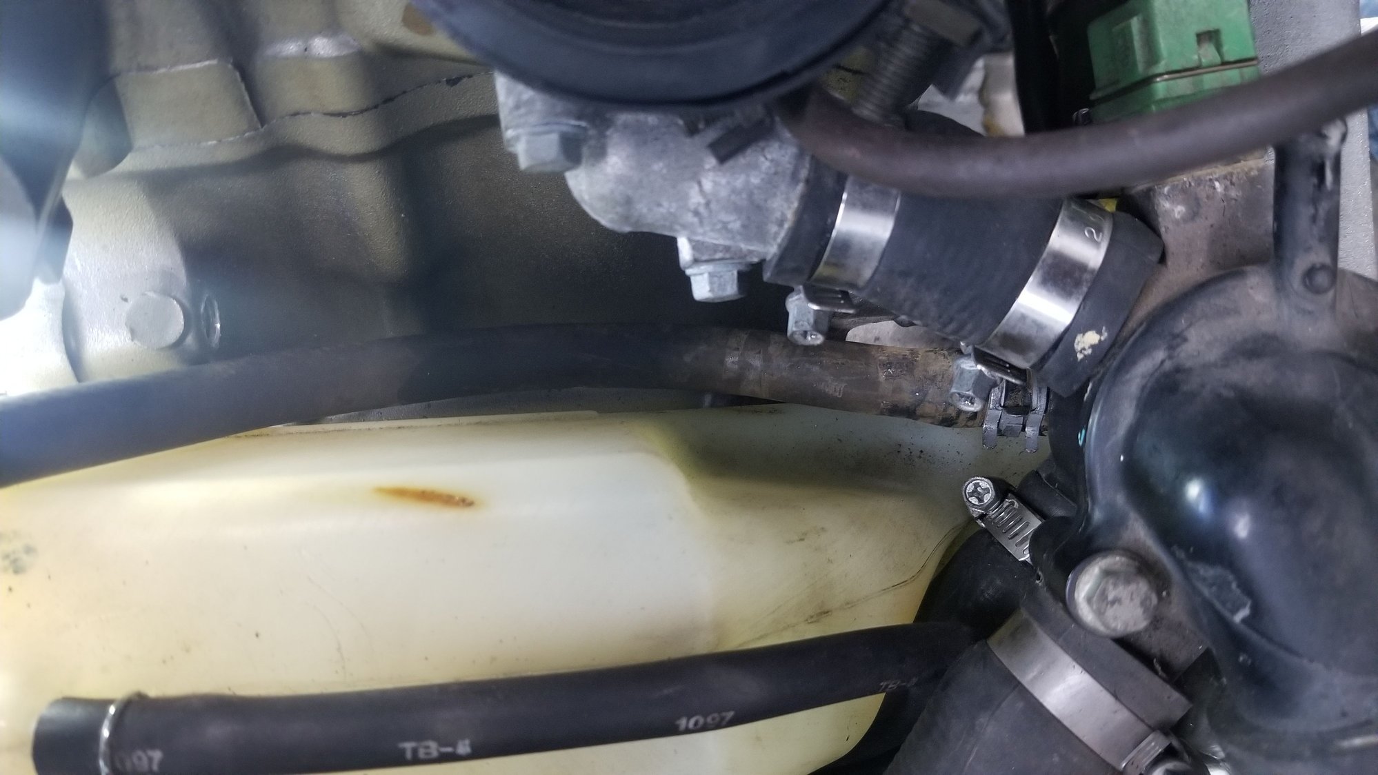 For starters i have a hose coming off a 90° nipple near the water pump is located. Where does this hose terminate? Does it vent to atmosphere?