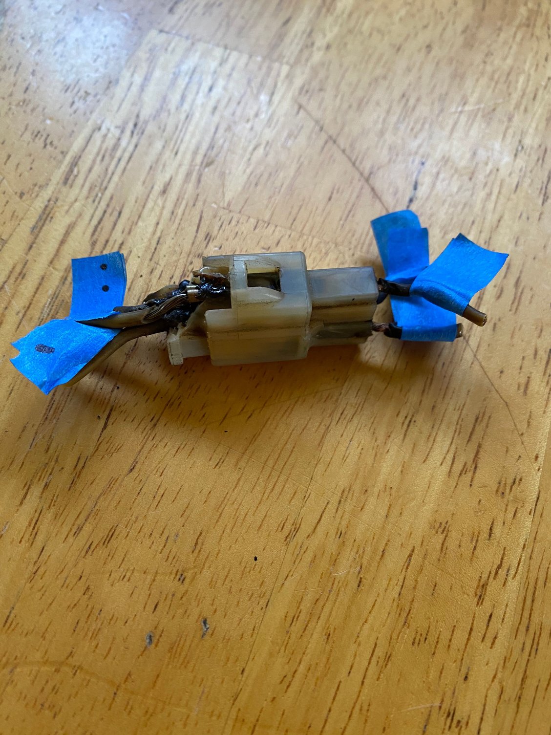 If it was 3 yellow wires it was the stator wires that fed the wire harness,they probably bypassed the burnt plug.Mine did the same thing.