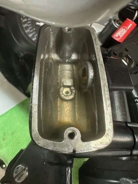 I haven't had time to ride much these last few years, and kind of neglected the bike. Walk in the garage to find the clutch slave leaking, damaging the paint on my belly pan. Got myself a rebuild kit and reinstalled it. I then proceeded to cleaning the sludge in the MC, when I popped out the small clip over the flow holes in the center.